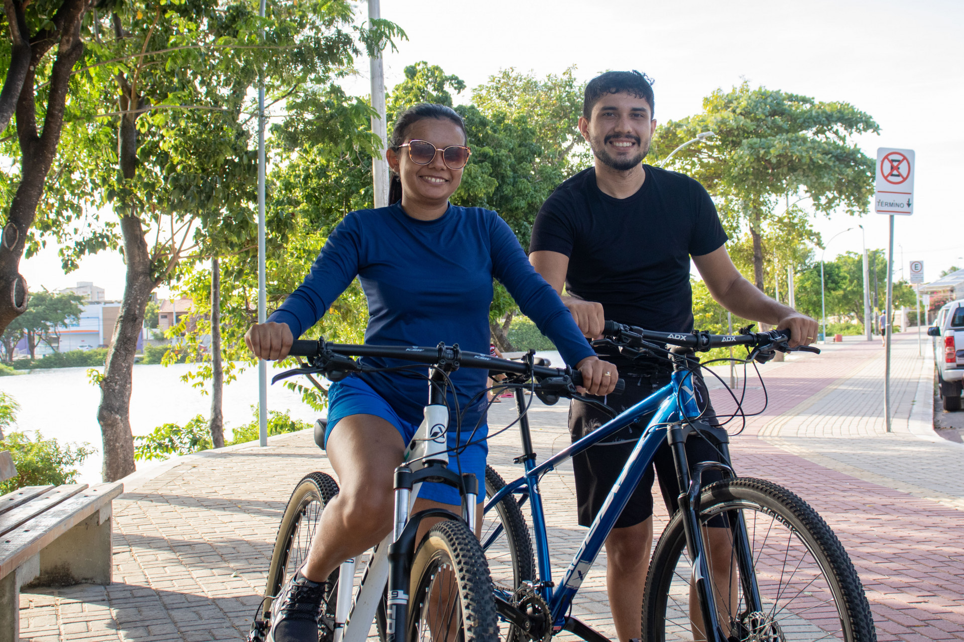 O casal formado pela supervisora Nayane Alves e o analista de negócios Matheus Chaves vem de outro bairro para pedalar na praça. Tendo começado a praticar ciclismo recentemente, eles pontuam que o Lago Jacarey, por ser um ambiente tranquilo e amplo, é ótimo para quem deseja começar a se exercitar nas férias. Porém, eles alertam que o trânsito para quem vem de bike para o local pode ser perigoso, considerando que alguns motoristas desrespeitam a ciclofaixa nos momentos de pico na semana.