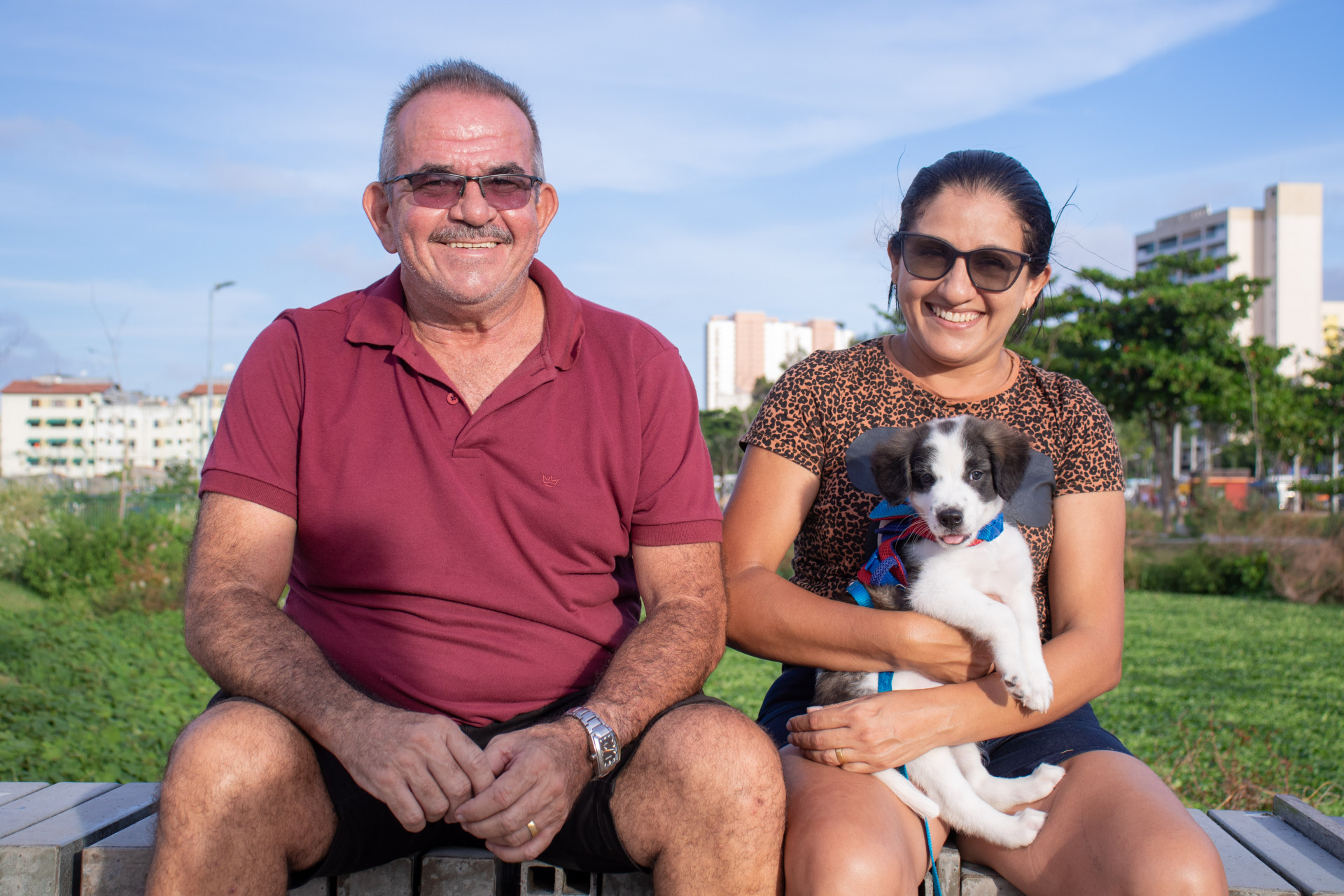 Uma das famílias que sempre frequentam o Parque, é a da servidora pública Natália Martins, seu esposo Orlando Nobre, aposentado e microempresário, o filho Marcos, de 10 anos, e o cachorrinho e xodó da família, o Duque, de 2 meses. A mãe conta que acredita ser fundamental dedicar esse tempo em família e, por isso, eles tentam vir pelo menos duas vezes na semana, no final da tarde, para passear pelo local e curtir o ambiente enquanto o filho joga bola.