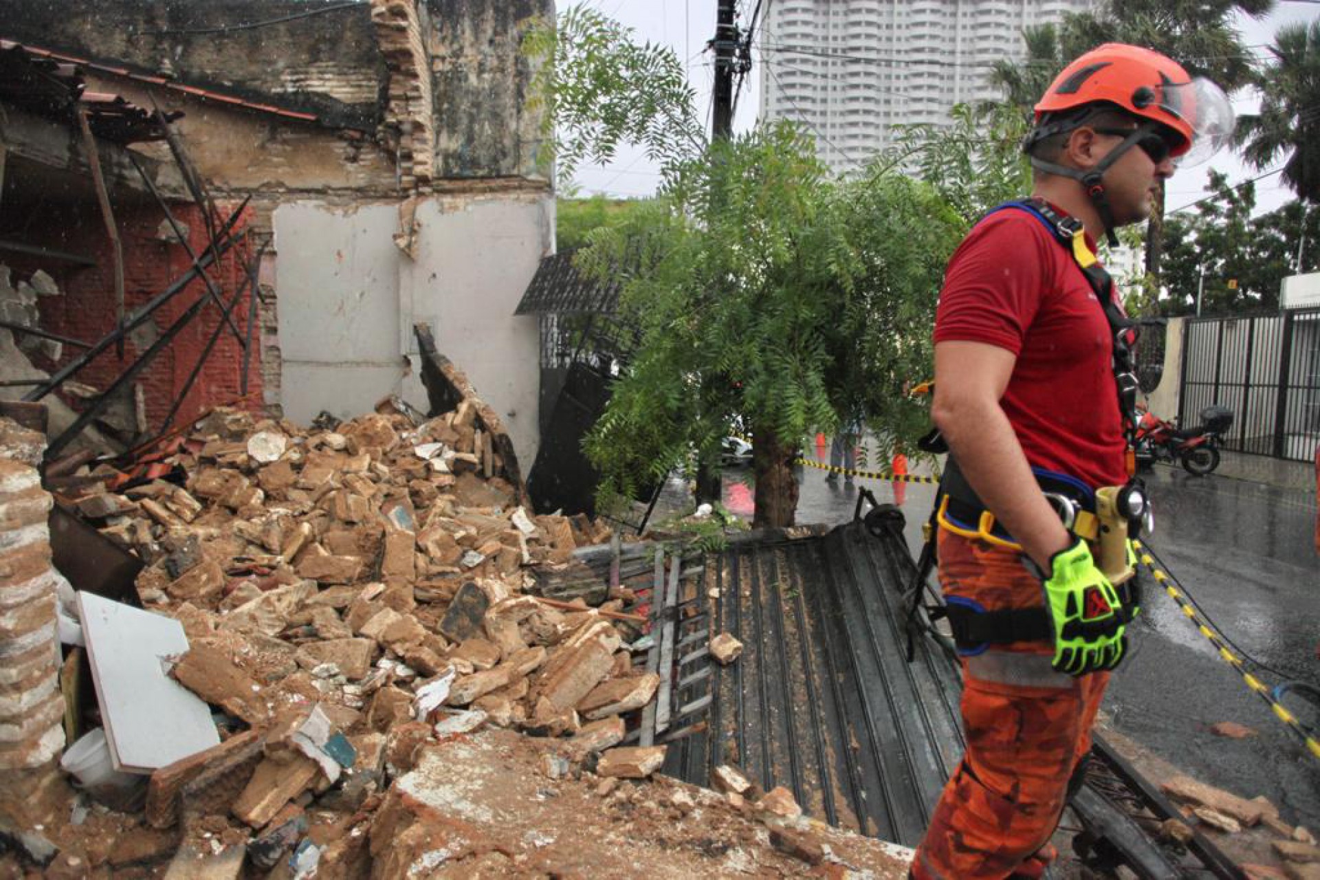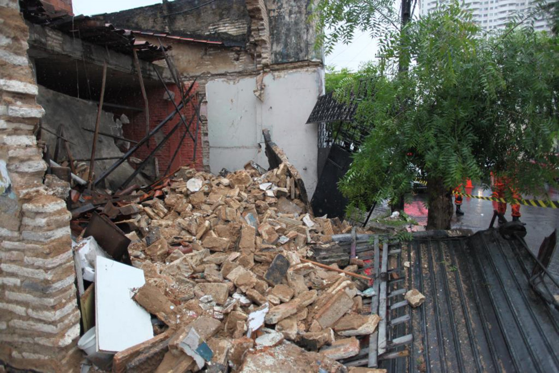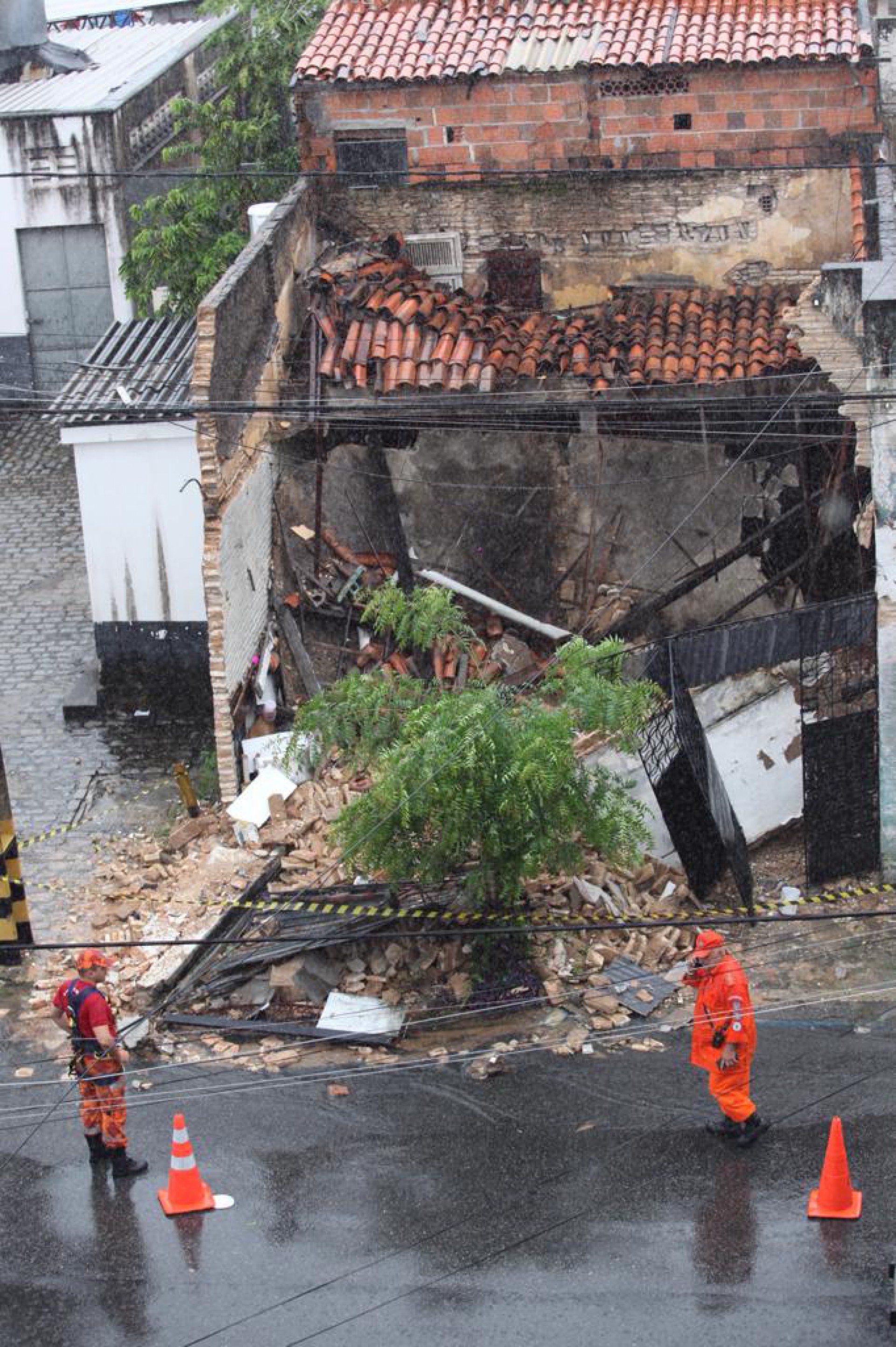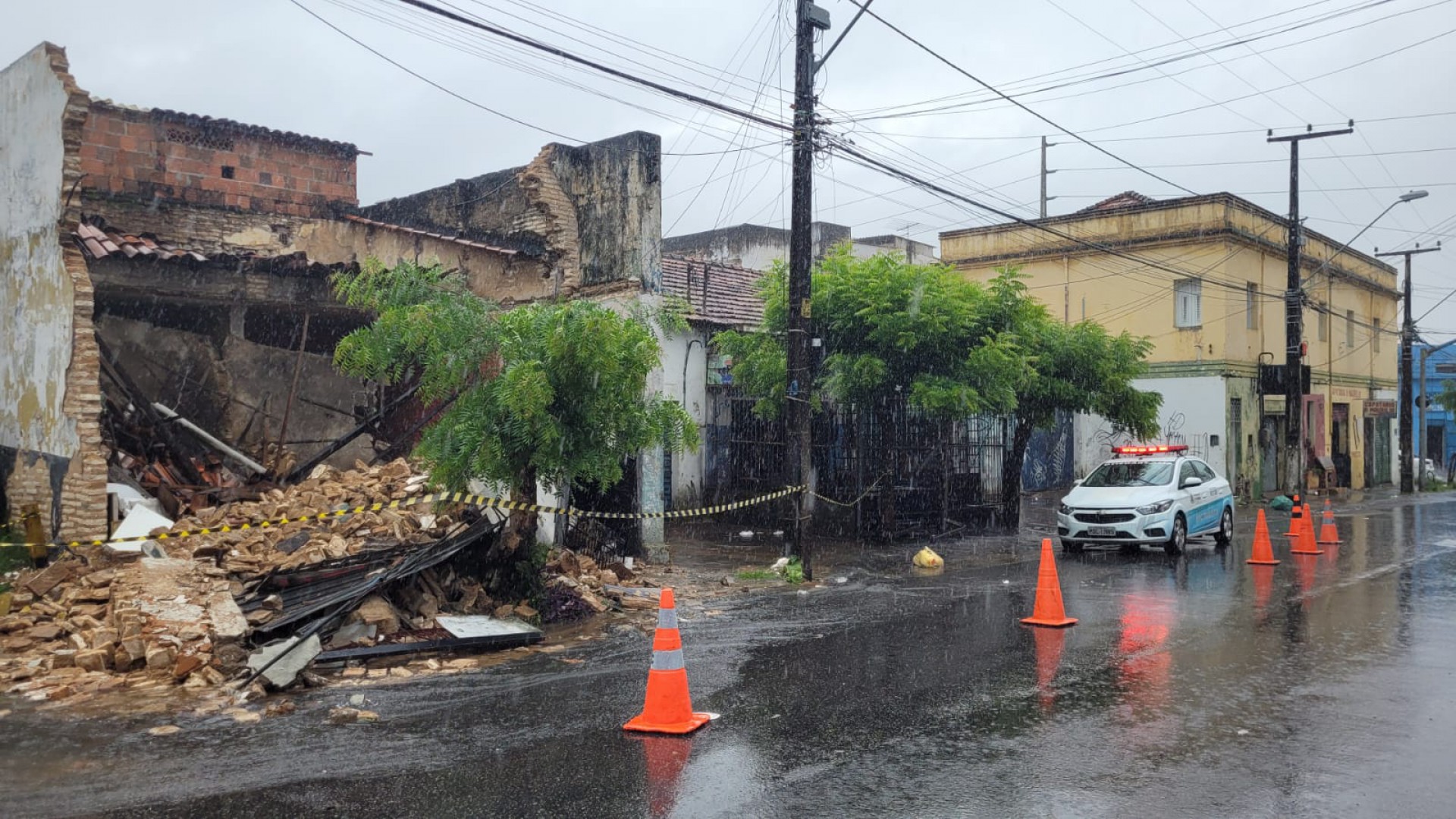 Um imóvel residencial desabou parcialmente na rua Padre Mororó, no bairro Moura Brasil, em Fortaleza. A ocorrência foi registrada por volta das 9 horas desta sexta-feira, 3.