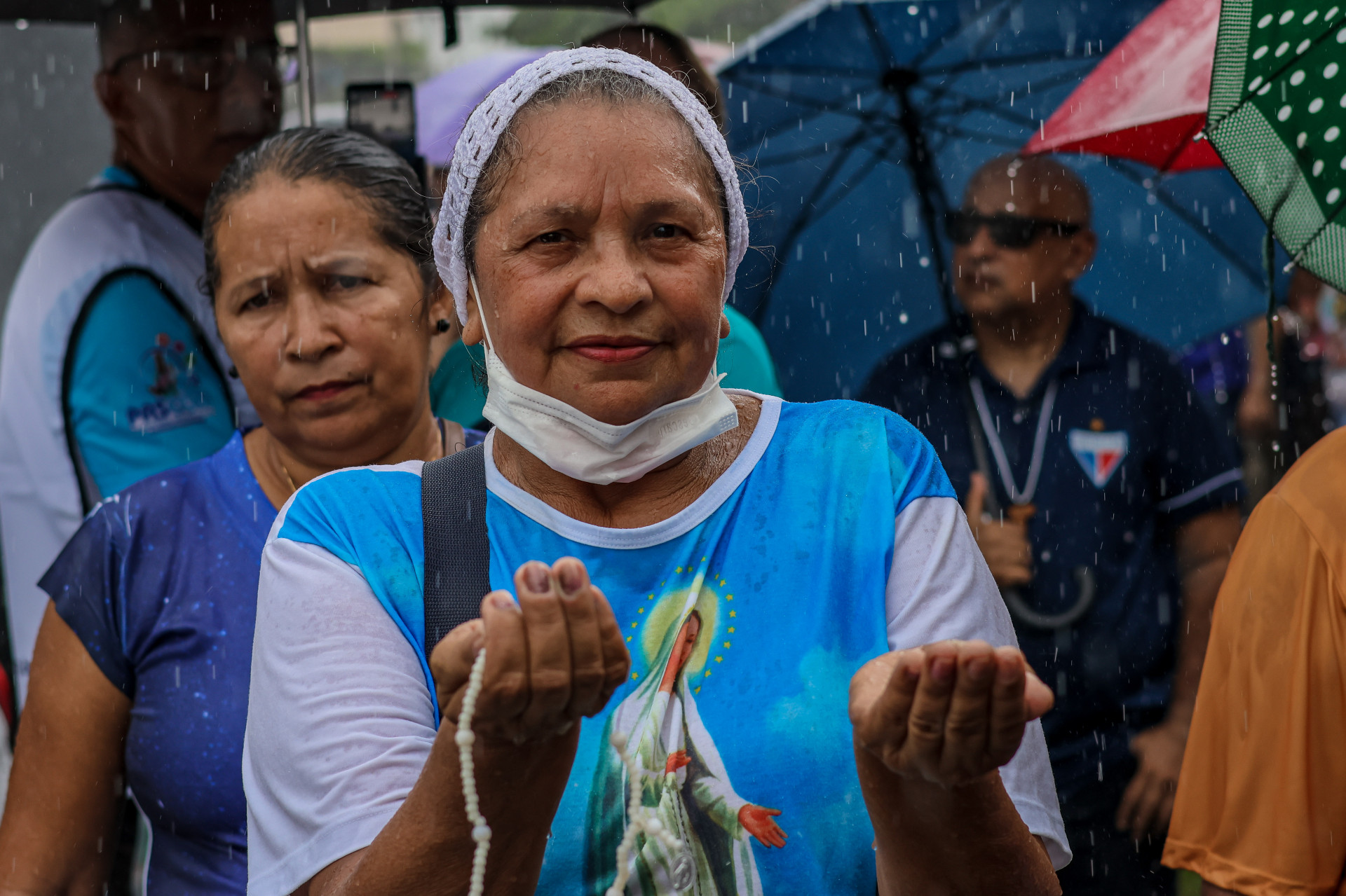 Mesmo a chuva que ocorreu em diversos momentos da manhã em Fortaeza não foi empecilho para os fiéis. Guarda-chuvas e capas de lona eram presença tão notável quanto os grupos que rezavam em conjunto, ou voluntários que auxiliavam os participantes com dificuldades de locomoção a seguir no trajeto.
