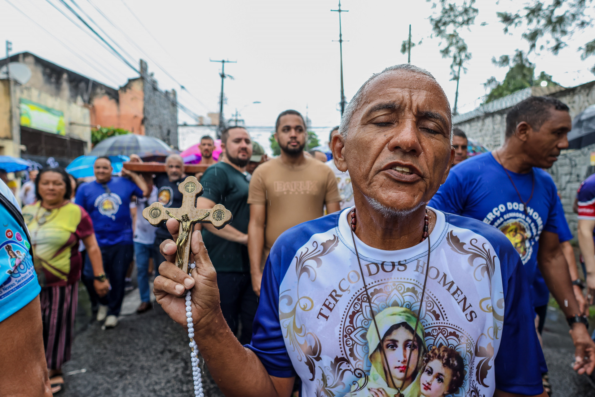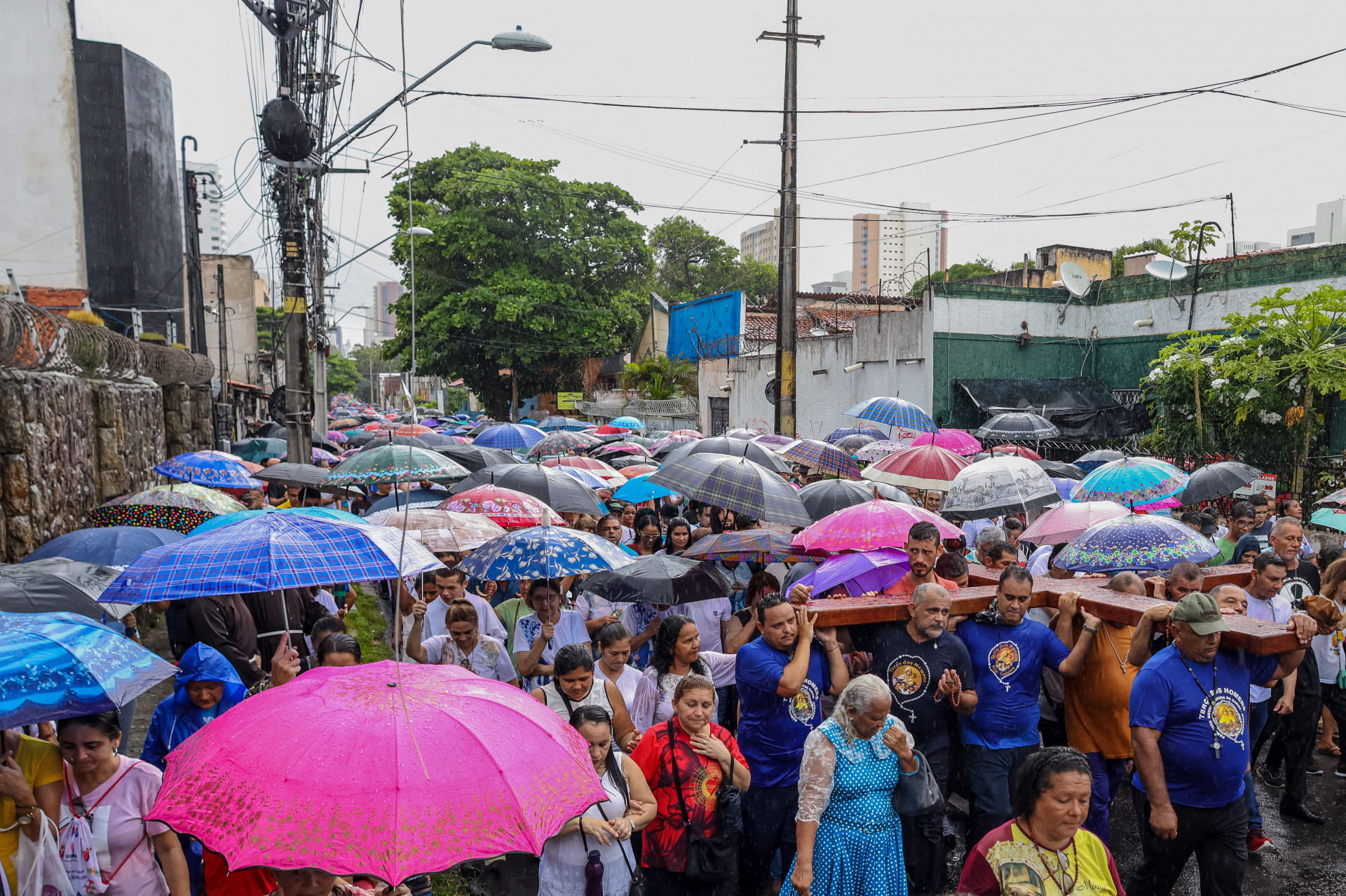 Procissão de quaresma da Igreja Católica não acontecia desde 2019 devido à pandemia de Covid-19; Caminhada Penitencial reuniu fiéis mesmo sob chuva