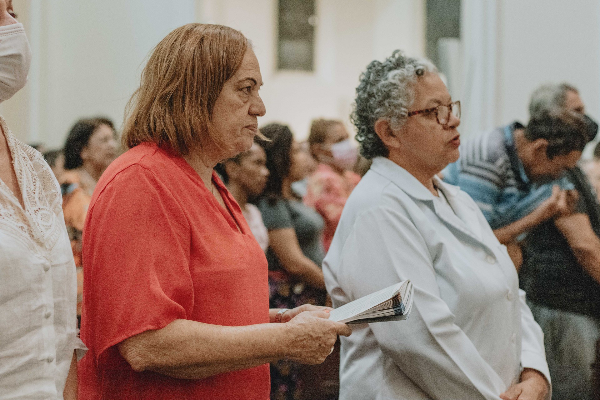 Pelo menos centenas de pessoas acompanhavam a cena, entregues devotamente ao significado do momento. Com os bancos todos lotados, muitos fiéis ocupavam o lugar que podiam. Alguns sentavam no chão da igreja ou até mesmo se acomodavam em bancos e cadeiras de praia que trouxeram de casa.