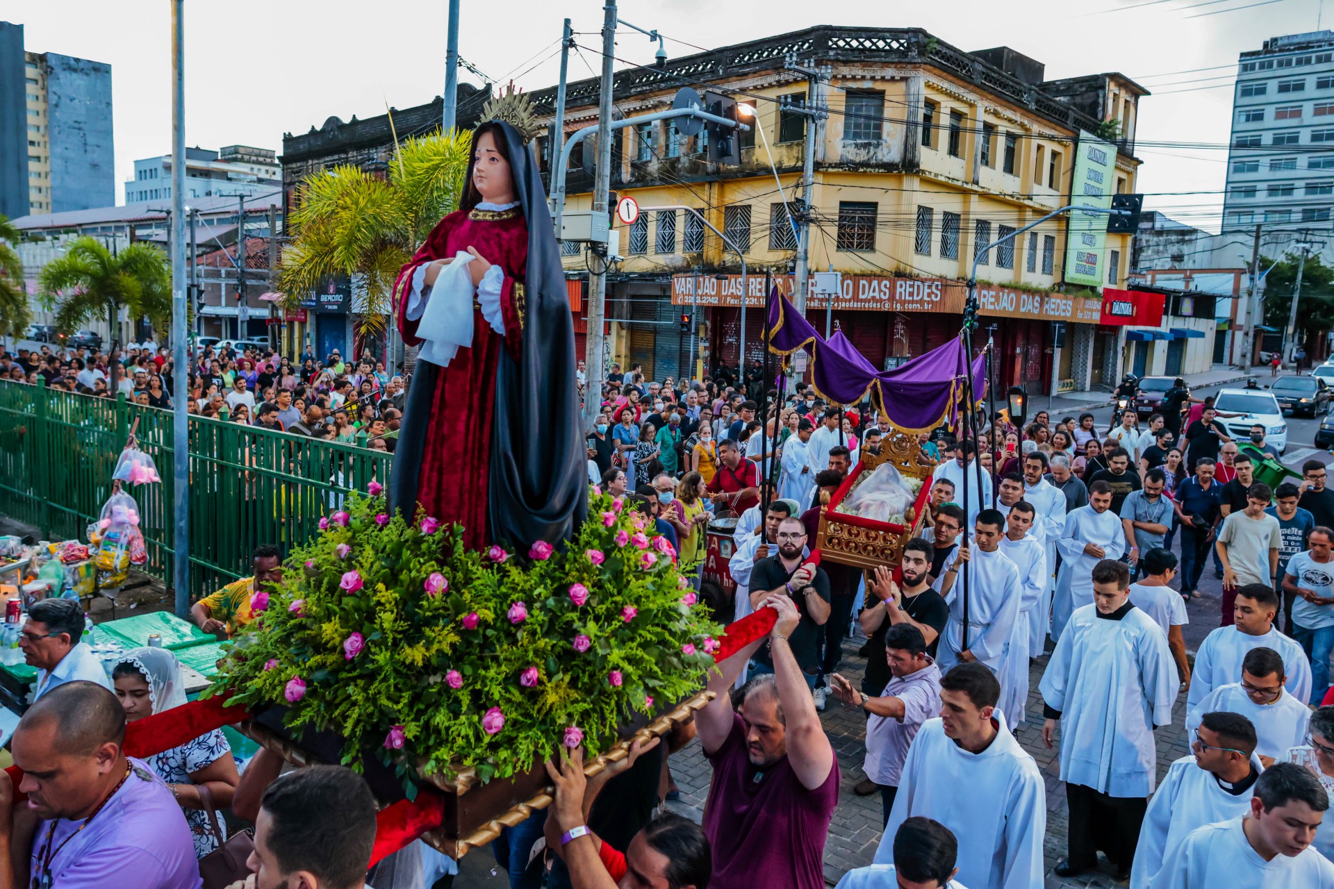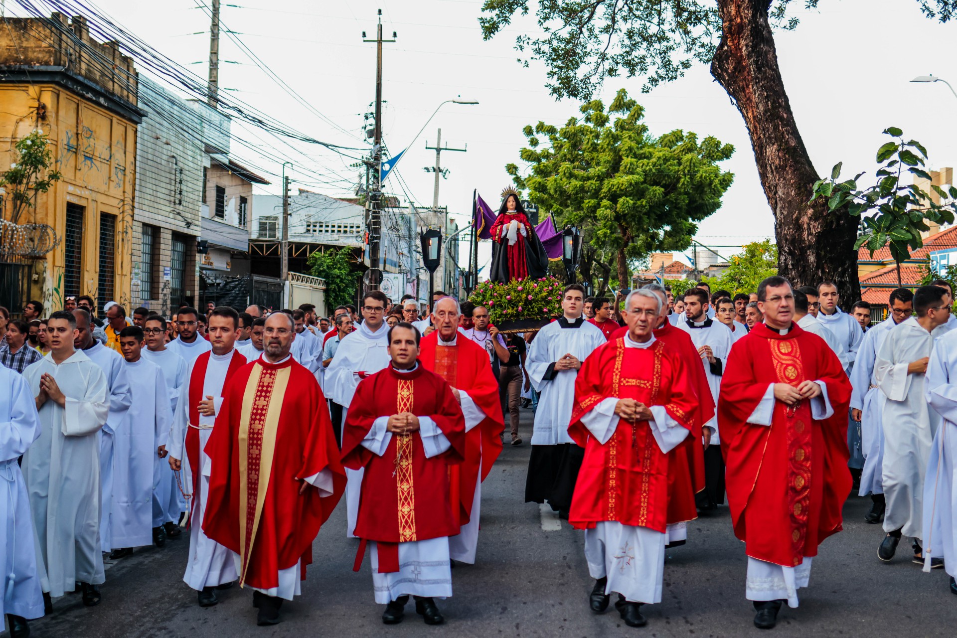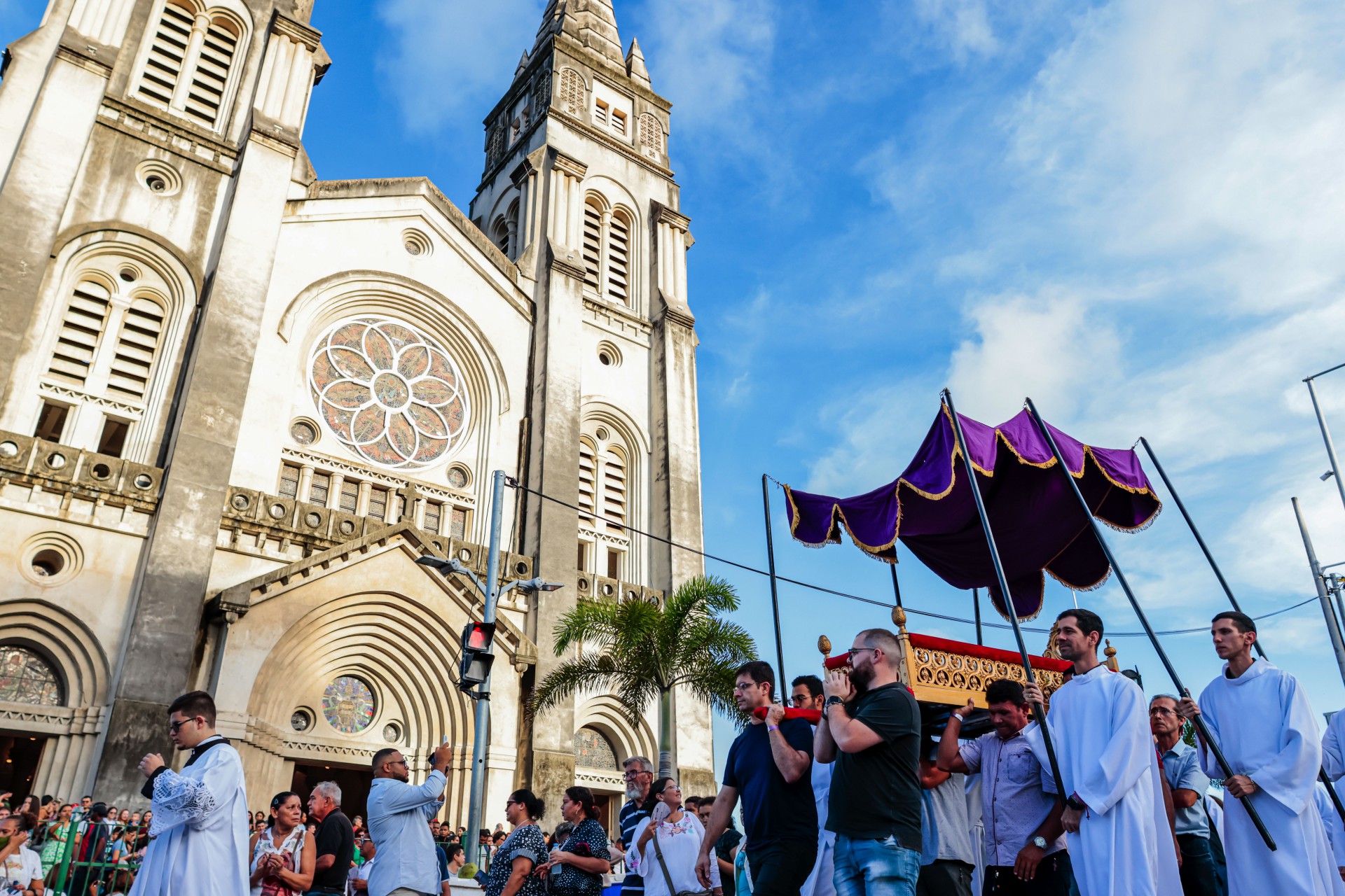 Dali, caminharam pela avenida Dom Manuel, cruzando a Arquidiocese de Fortaleza, e voltaram à Catedral pela rua Costa Barros, encerrando a procissão de cerca de 40 minutos. No caminho, vários moradores foram às janelas e às portas para acompanhar a celebração.