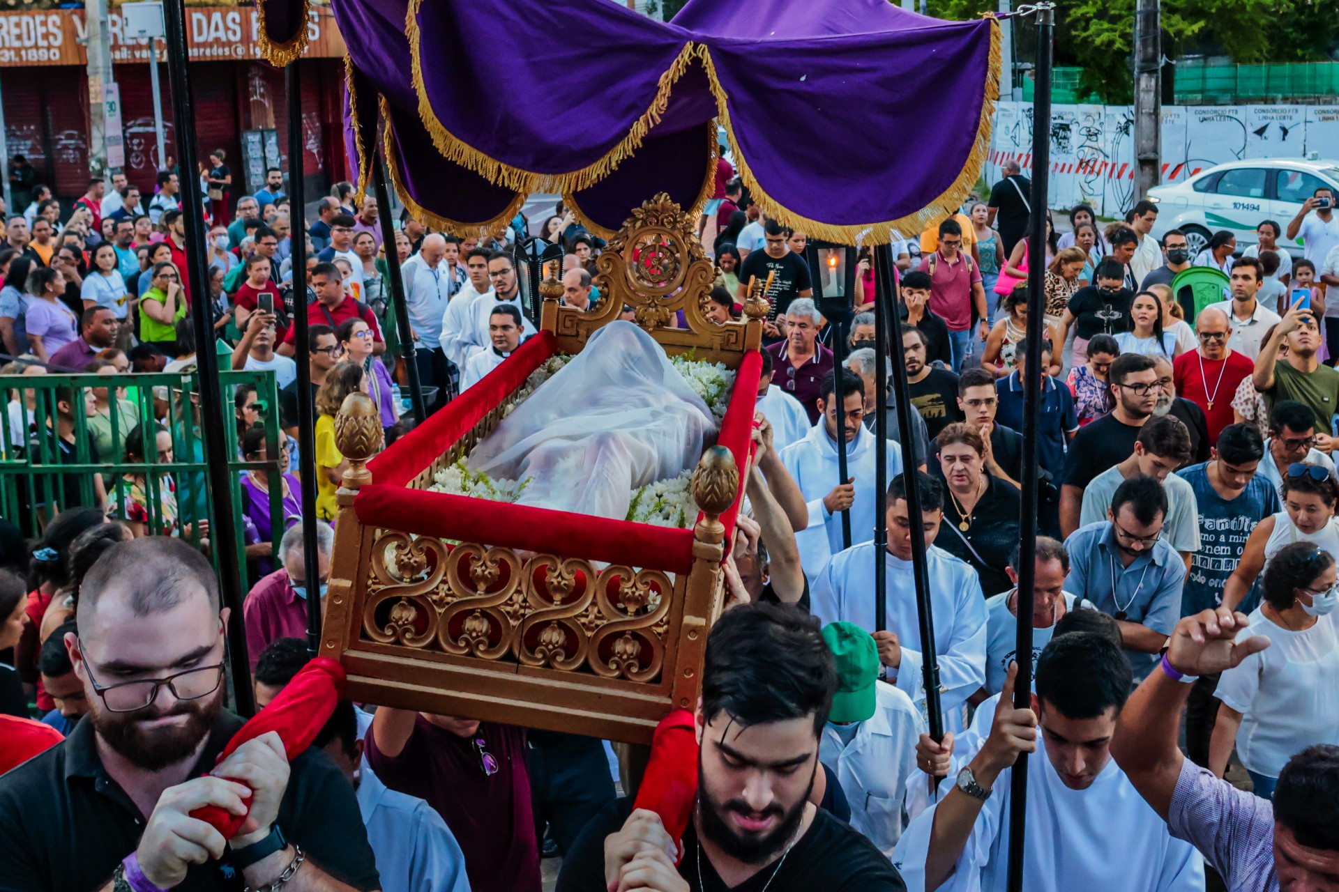(Foto: AURÉLIO ALVES)FORTALEZA,CE, BRASIL, 07.04.2023: Procissão do Cristo morto com saida e retorno da Catedral, fieis foram as ruas para fazer sua semana santa. (Foto: Aurélio Alves)
