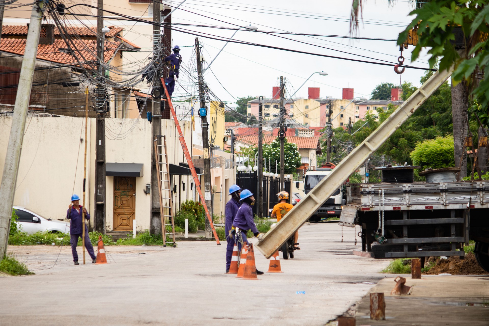 No bairro Passaré, parte dos equipamentos está torto e com a fiação solta ou desorganizada. Na rua Antônio Alexandrino dos Réis, um poste estava sendo substituído por uma empresa privada de telecomunicação devido à estrutura do equipamento que estava comprometida, na manhã dessa quinta, 6.