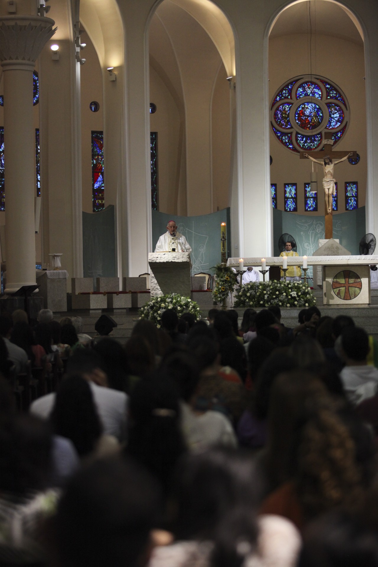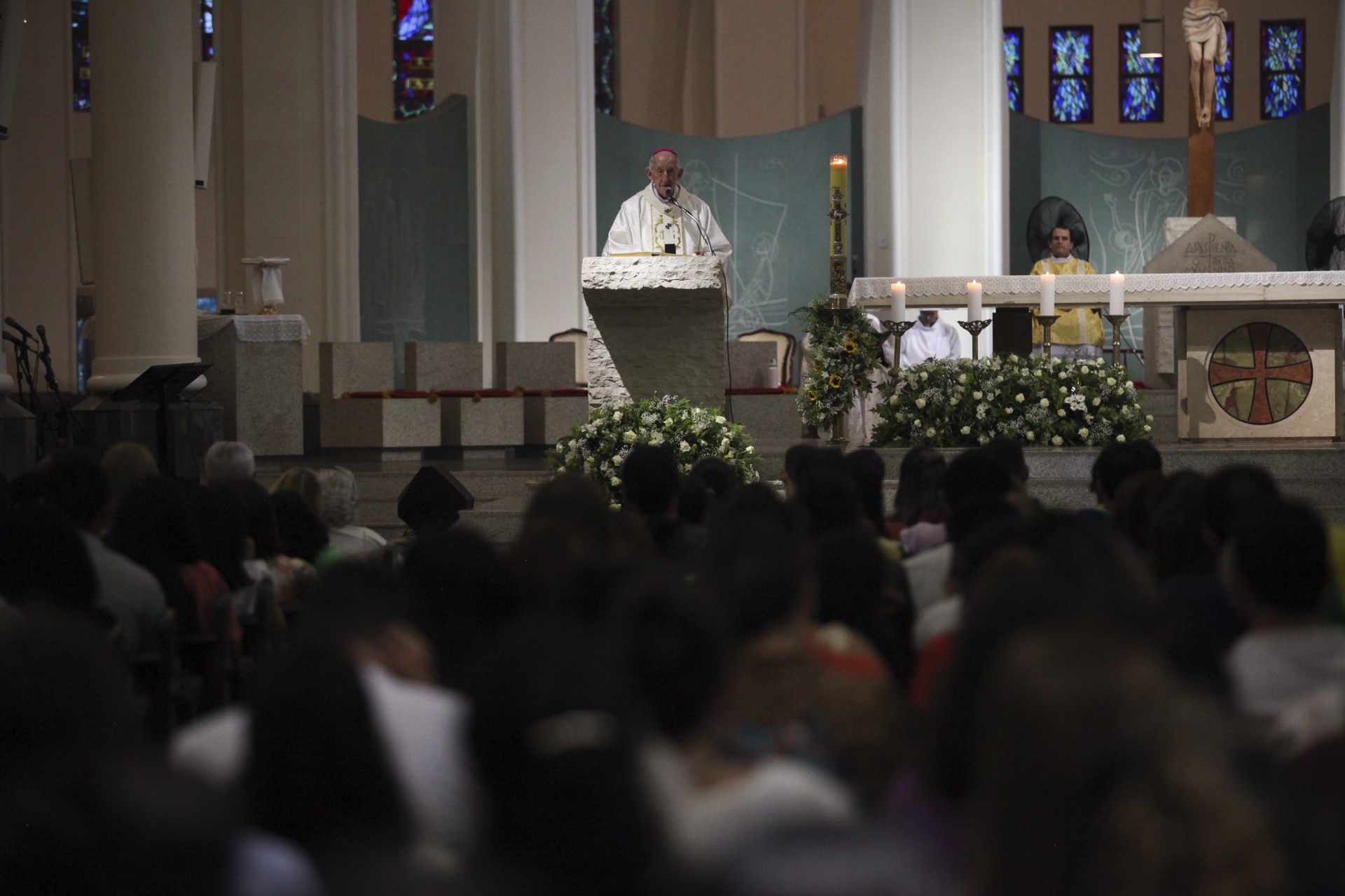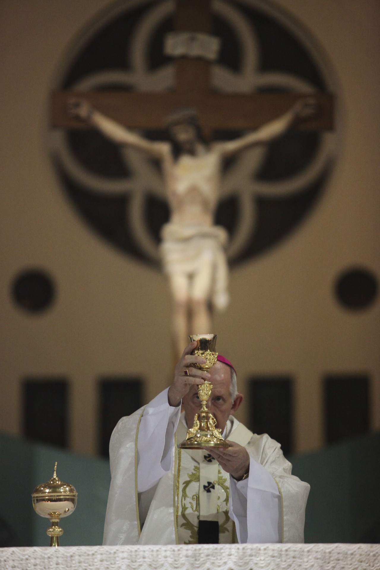 A Catedral Metropolitana estava não só com todos os assentos tomados, mas também com pessoas sentadas em cadeiras dobráveis e mesmo no chão. A atenção estava voltada para a palavra do cardeal dom José Antonio Aparecido Tosi Marques, arcebispo de Fortaleza. Ele fez uma reflexão sobre a passagem da Bíblia que fala sobre o encontro de Jesus com os discípulos e o fato de que eles não o reconheceram à primeira vista.