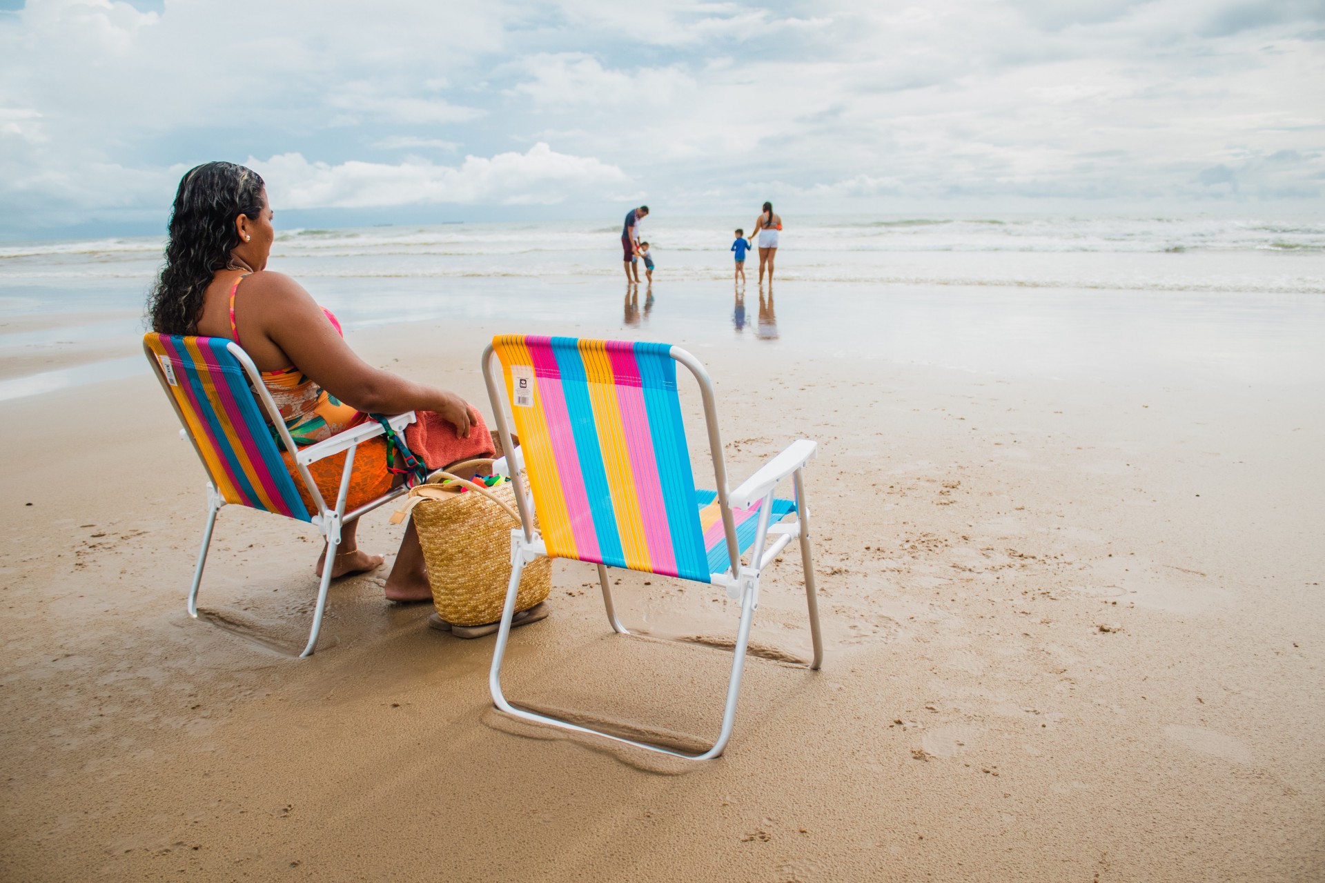 Já para Daiane da Silva, 34, o tempo chuvoso não foi um problema, e sim a solução. "Na realidade (eu vim) foi por conta da chuva. O sol não tá tão forte, então eu saio de casa, não sou muito de sol", explicou a autônoma, que aproveitou o dia de folga para ir à praia com as duas filhas.