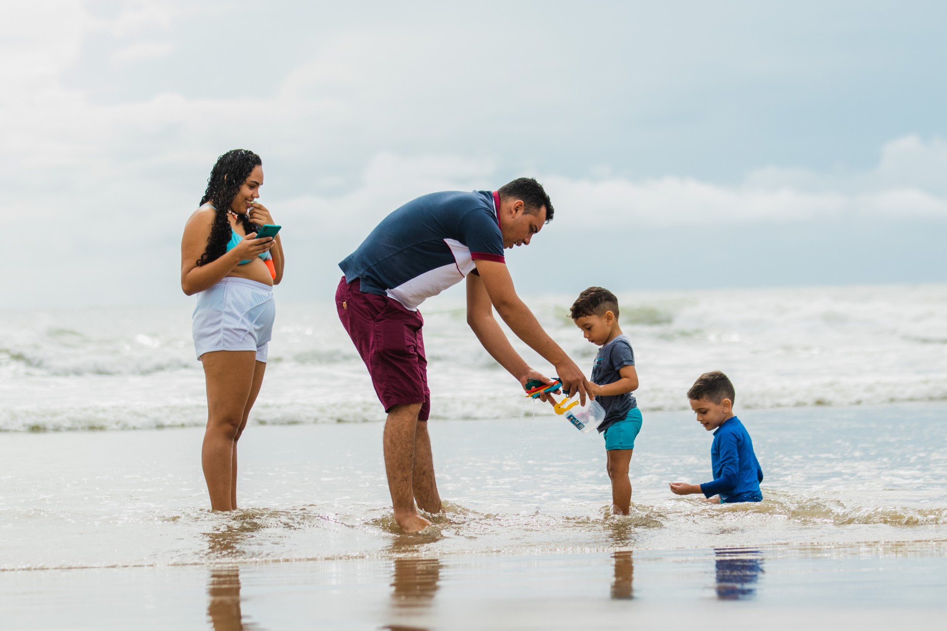 Michel Arruda, 42, também buscava na praia, além do lazer, ter um momento de descanso ao lado da sua família. "Agora a gente procura fazer com que as turbinas estejam prontas pra poder terminar o ano ai se Deus quiser bem", diz o vendedor, que esteve no local quando a chuva já havia acabado.