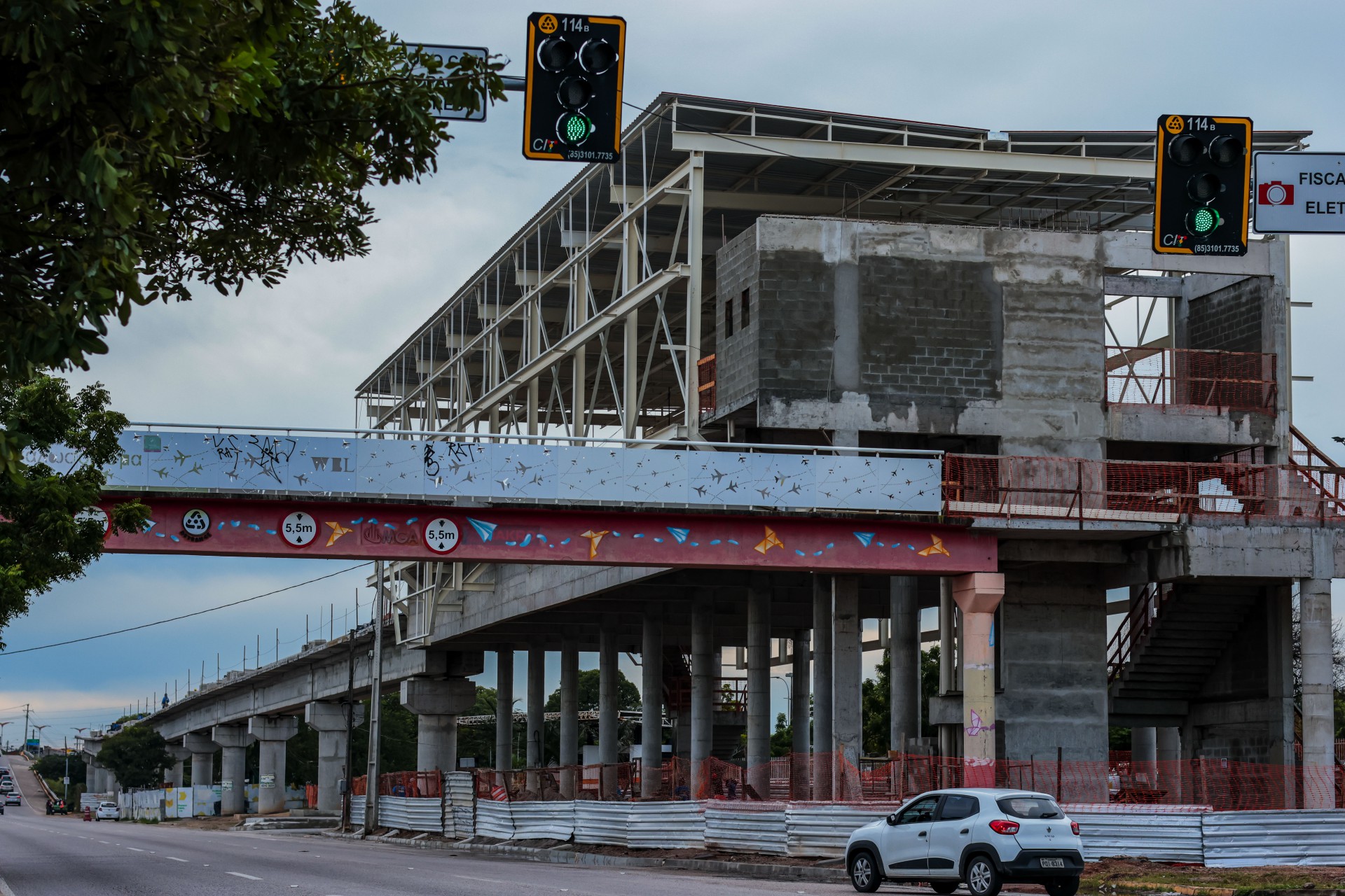 As colunas dos trilhos da Estação Aeroporto passam por um trecho de árvores da região. O POVO questionou à Seinfra se foi feita alguma avaliação de impacto da obra e se há previsão de replantio das árvores.