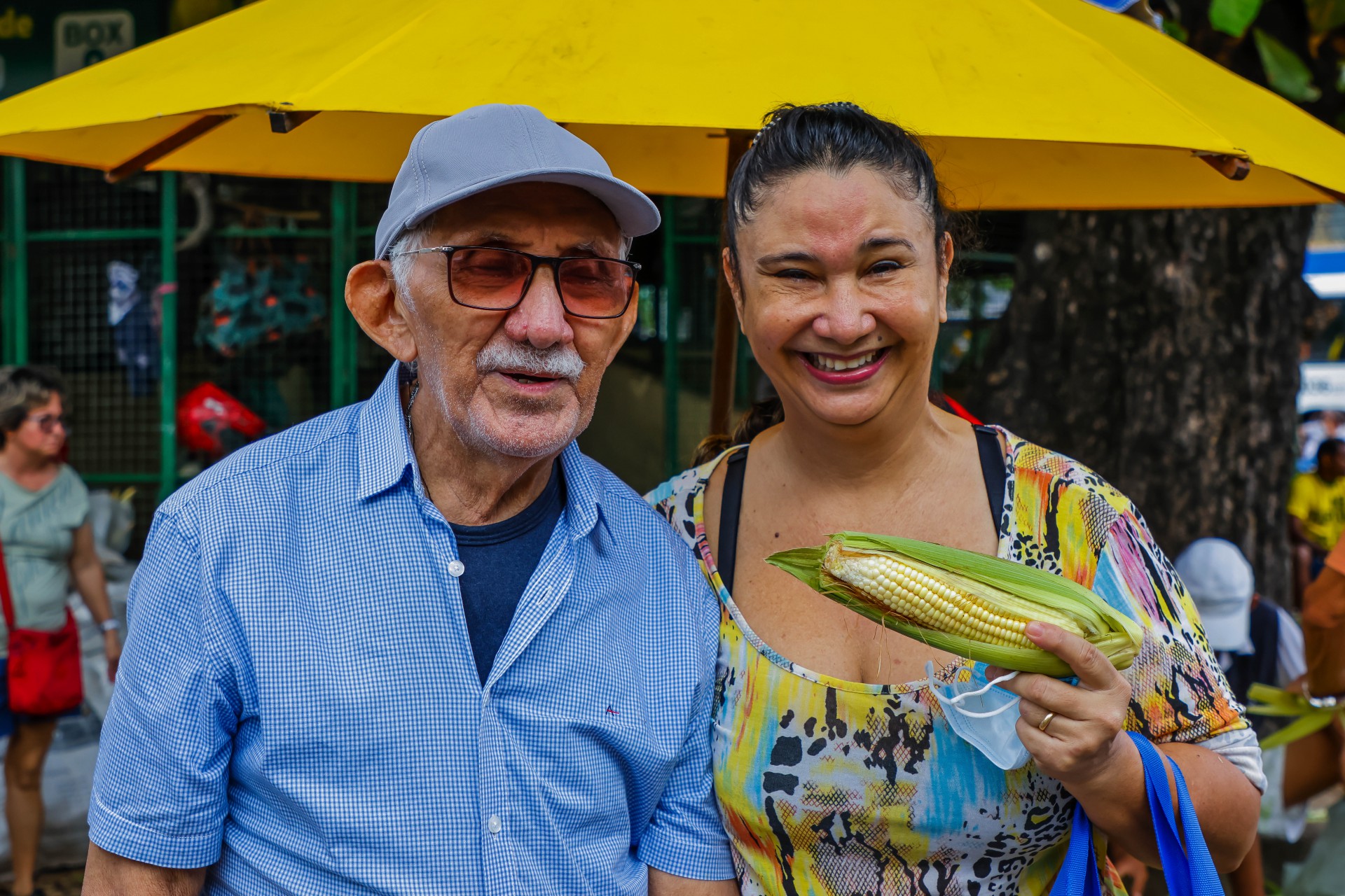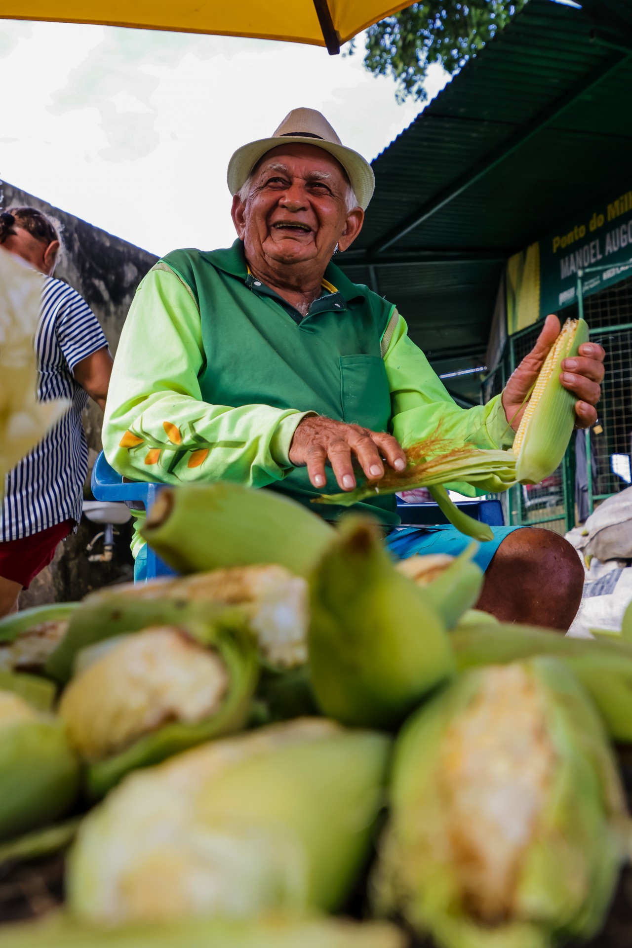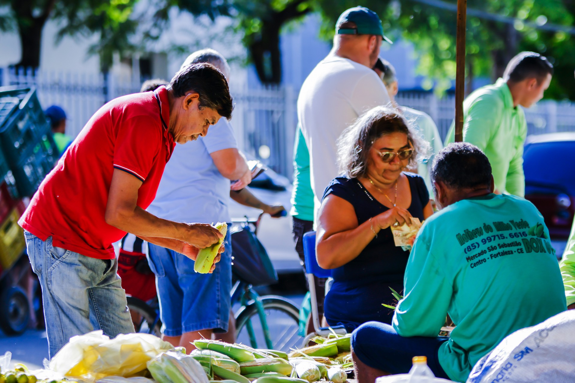 O semáforo vermelho é oportunidade de compra para clientes que param nos carros. Outros, fazem questão de analisar a qualidade das espigas. É o caso da Irene Barbosa, 52, e do pai, seu Antônio Batista Costa, 82.