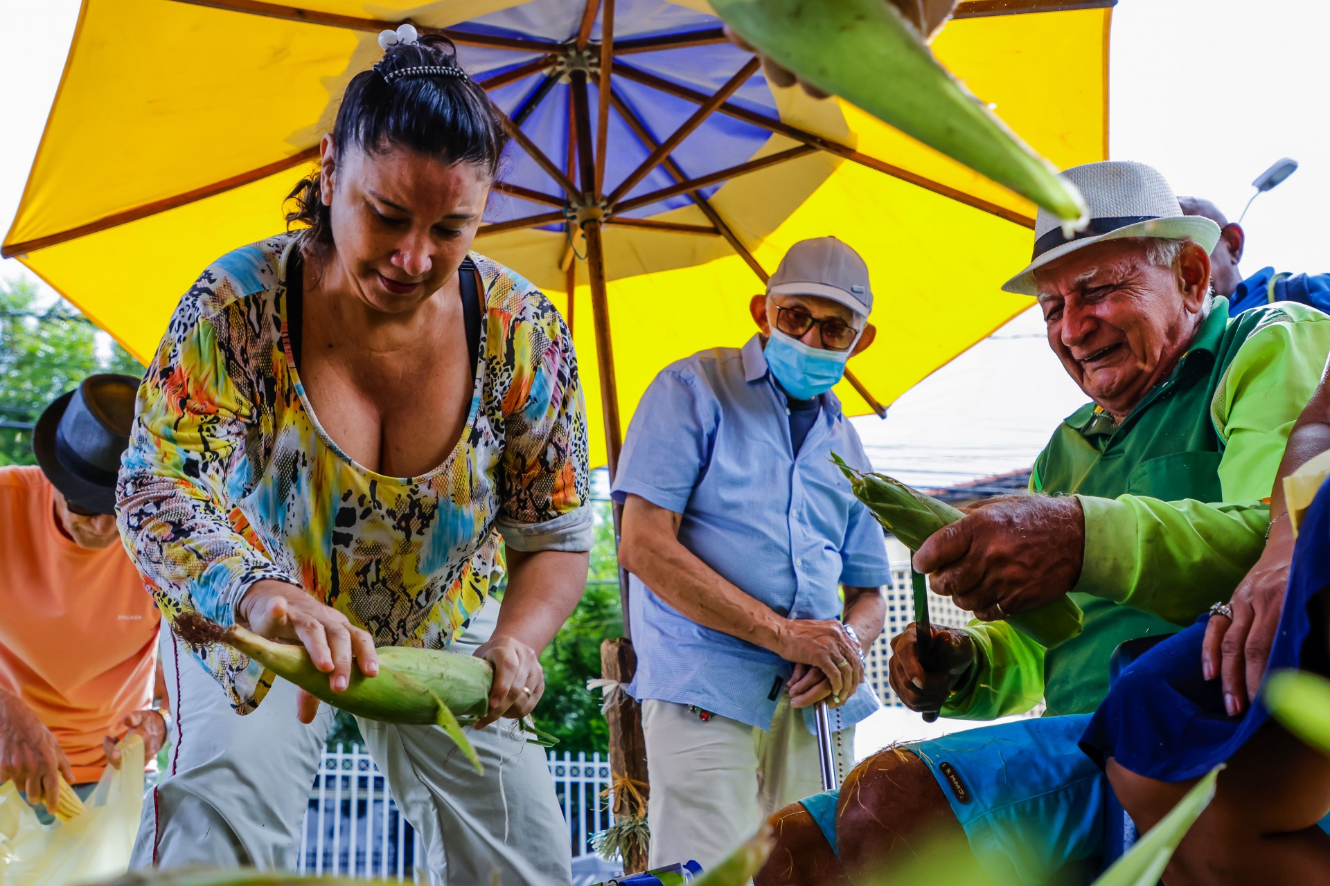 "Ele tem que aprovar se o milho é bom ou não porque ele é do sertão", justifica. Ele ensina que, se o talo tiver ressecado, indica que o produto é mais velho. Irene completa: é preciso ver se a espiga não está banguela, ou seja se os grãos estão completos.