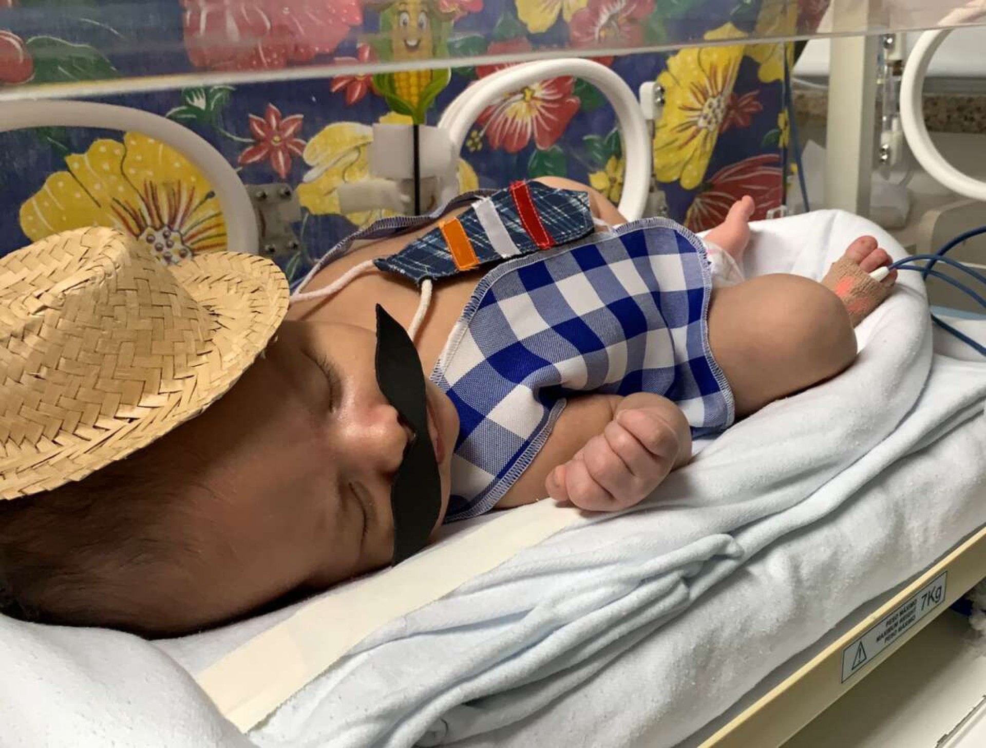 Bebês na UTI de hospital em Fortaleza ganham ensaio fotográfico com temática junina
