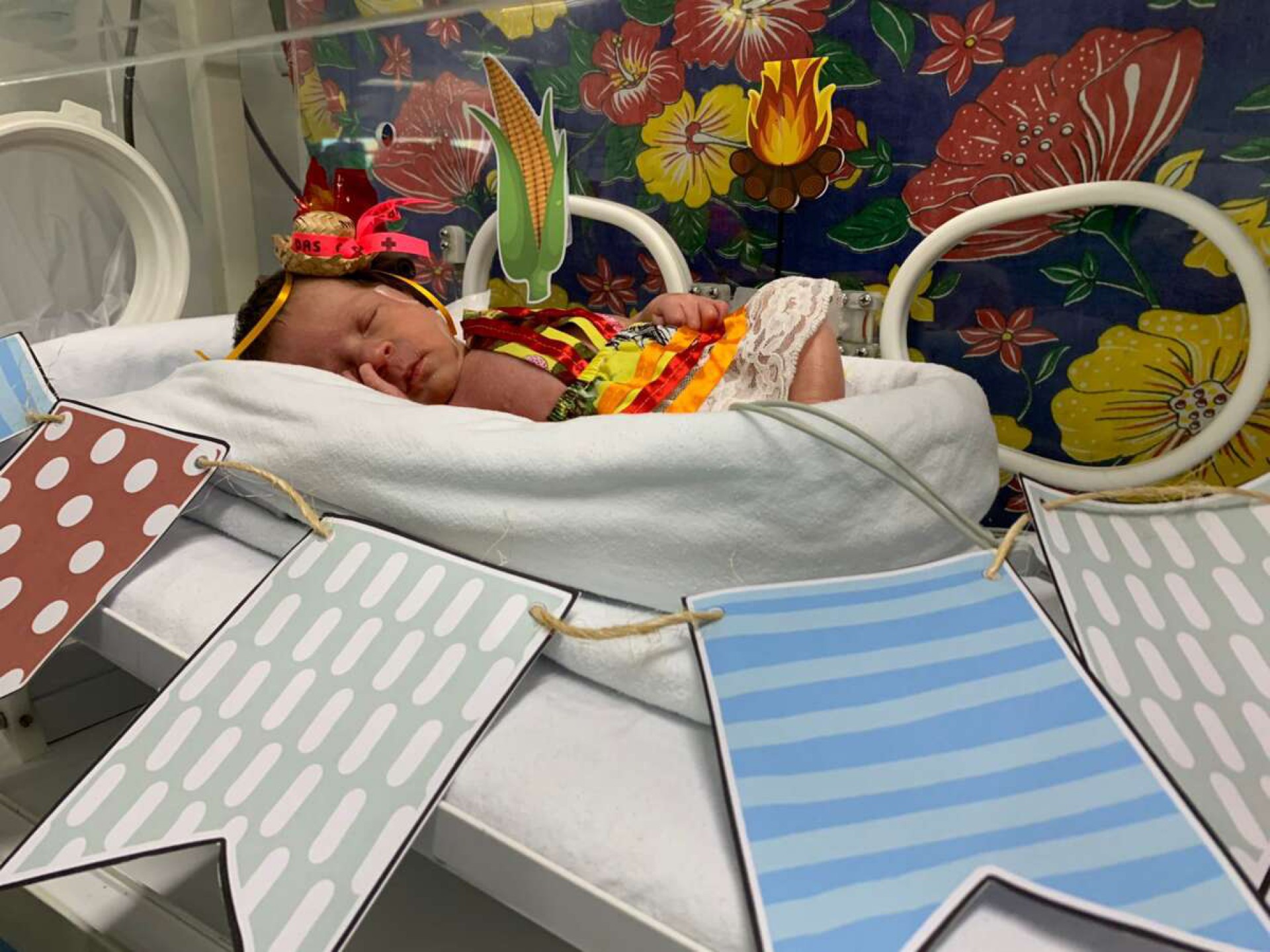Os bebês internados na Unidade de Terapia Intensiva (UTI) Neonatal do Hospital Geral Dr. Waldemar Alcântara (HGWA), em Fortaleza, receberam, nessa quinta-feira, 22, uma sessão fotográfica com temática de festa junina.
