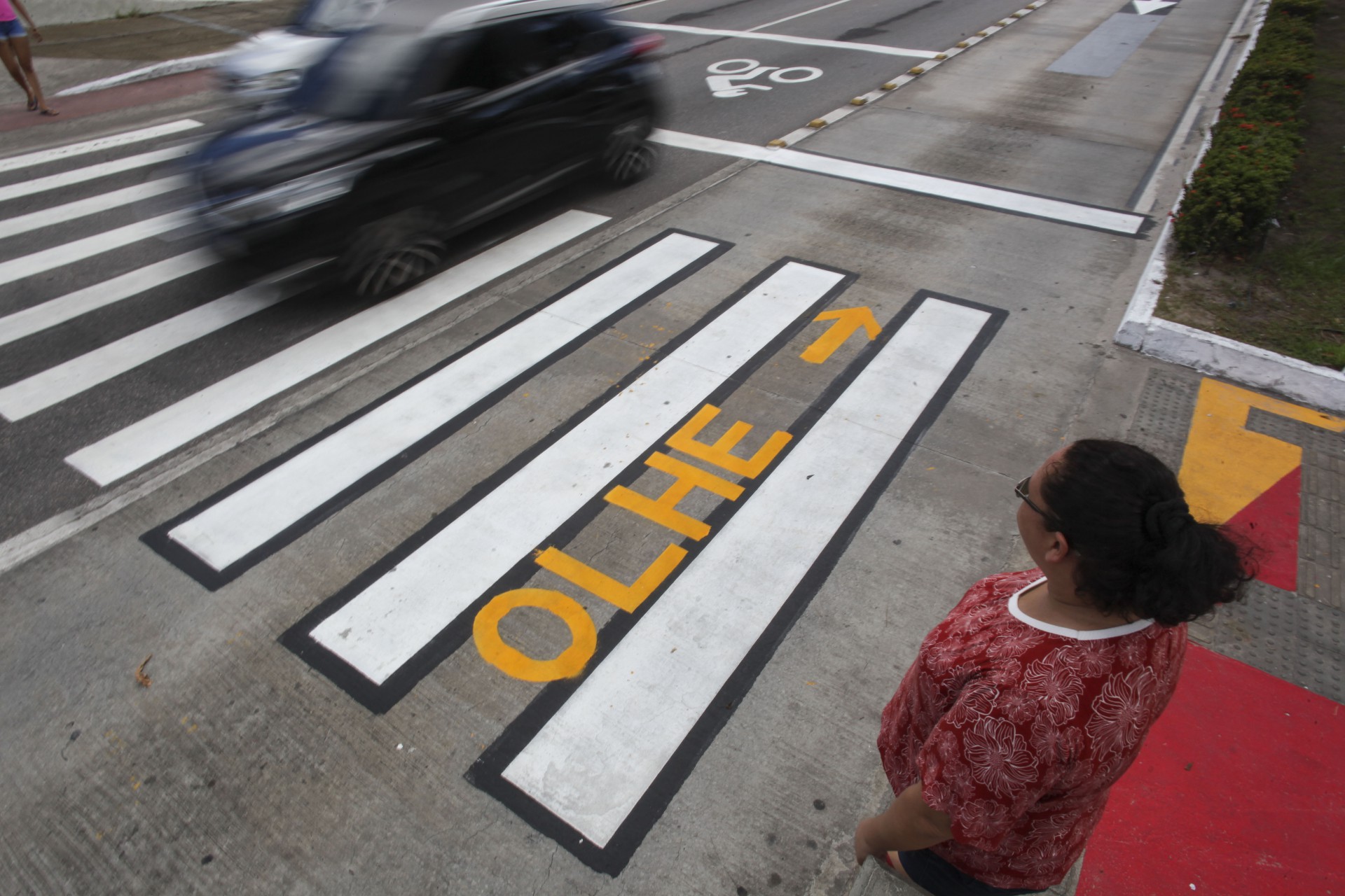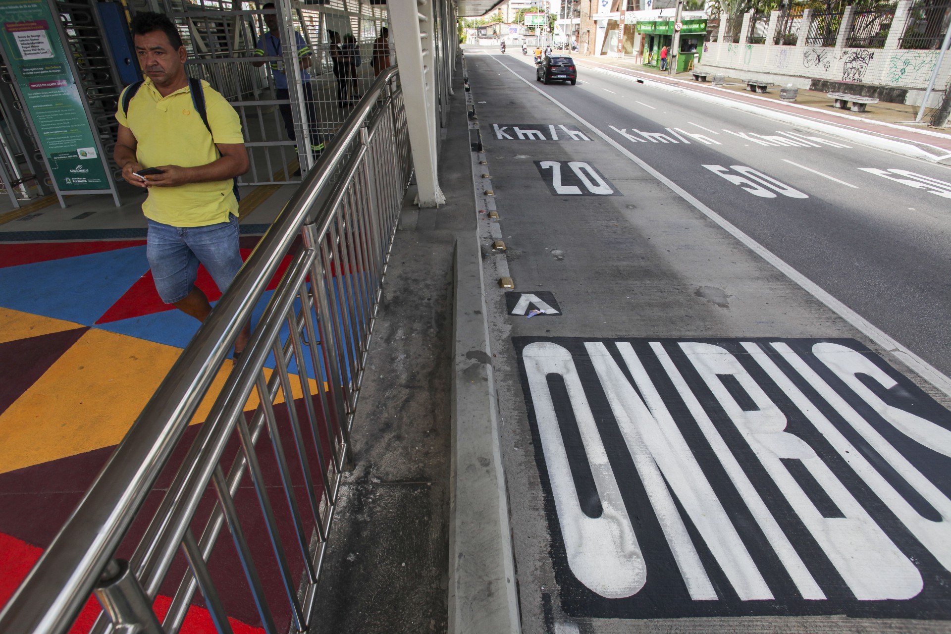 Além da pintura colorida, um “olhe”, na área de espera para a travessia, e alertas de velocidade, para os ônibus, foram colocados nas proximidades da estação. “Na chegada, os ônibus devem reduzir a velocidade [de 50km/h] para 20 km/h, porque a gente entende que é uma área de grande concentração de pedestres. Por segurança o ônibus se aproxima com uma velocidade mais baixa”, diz Saulo.