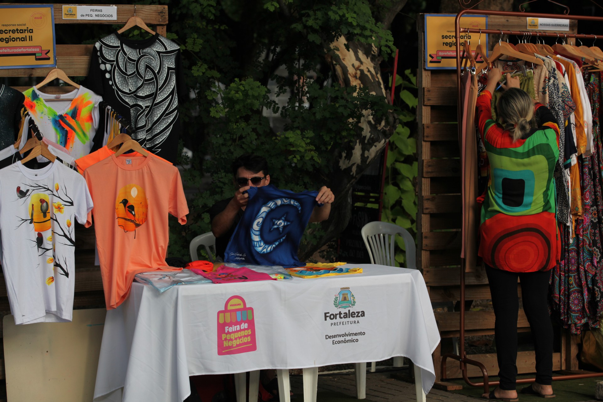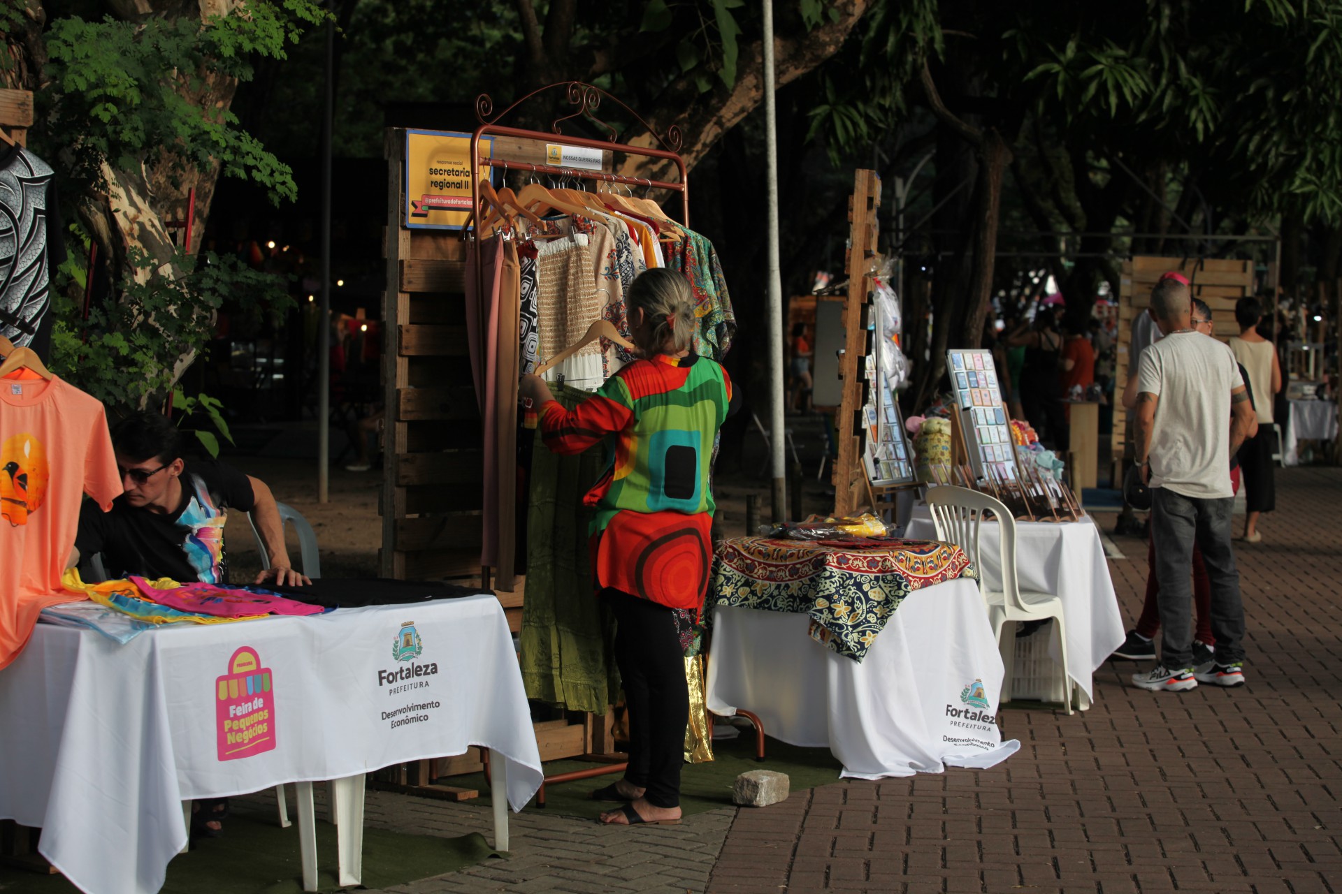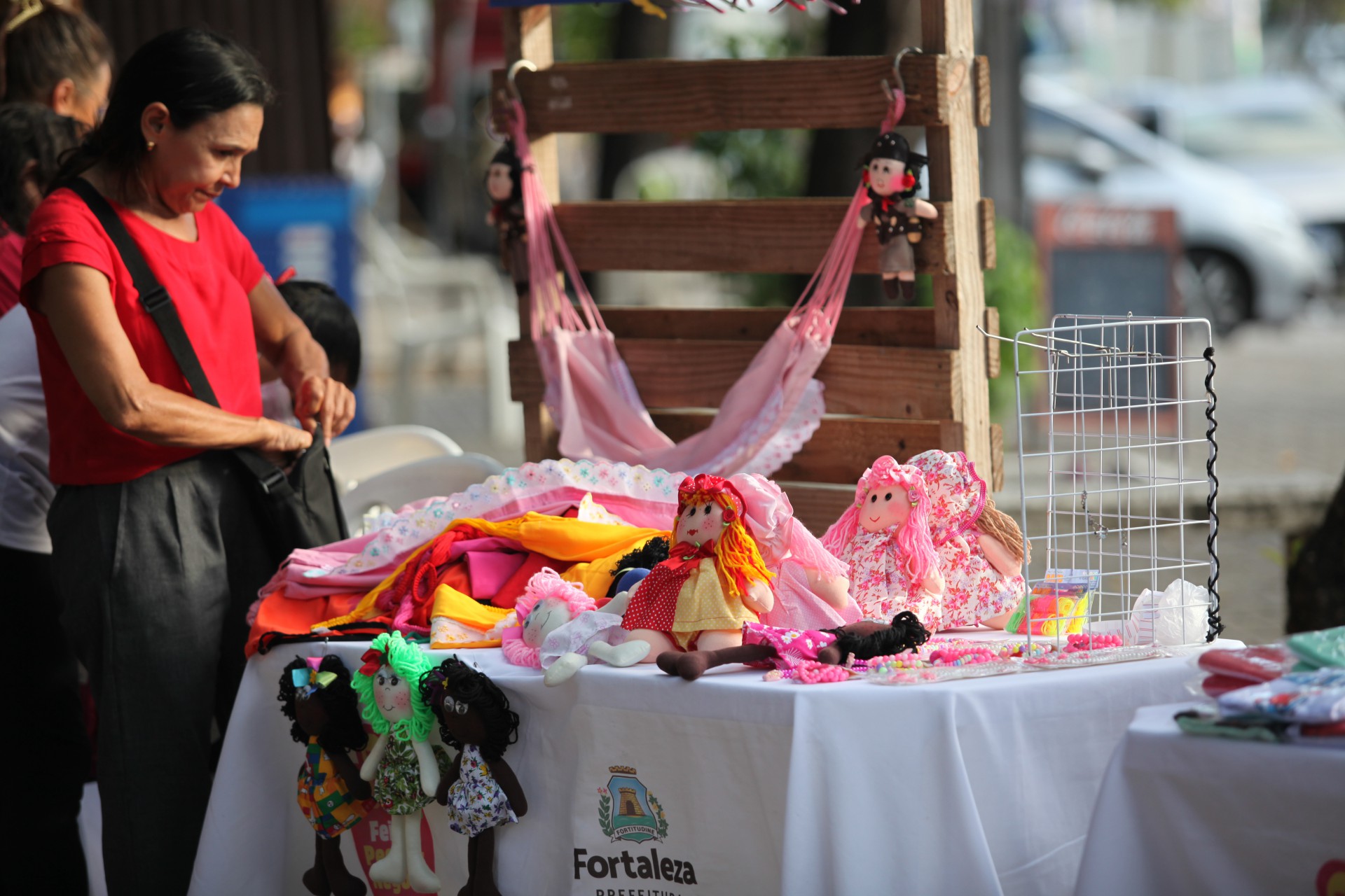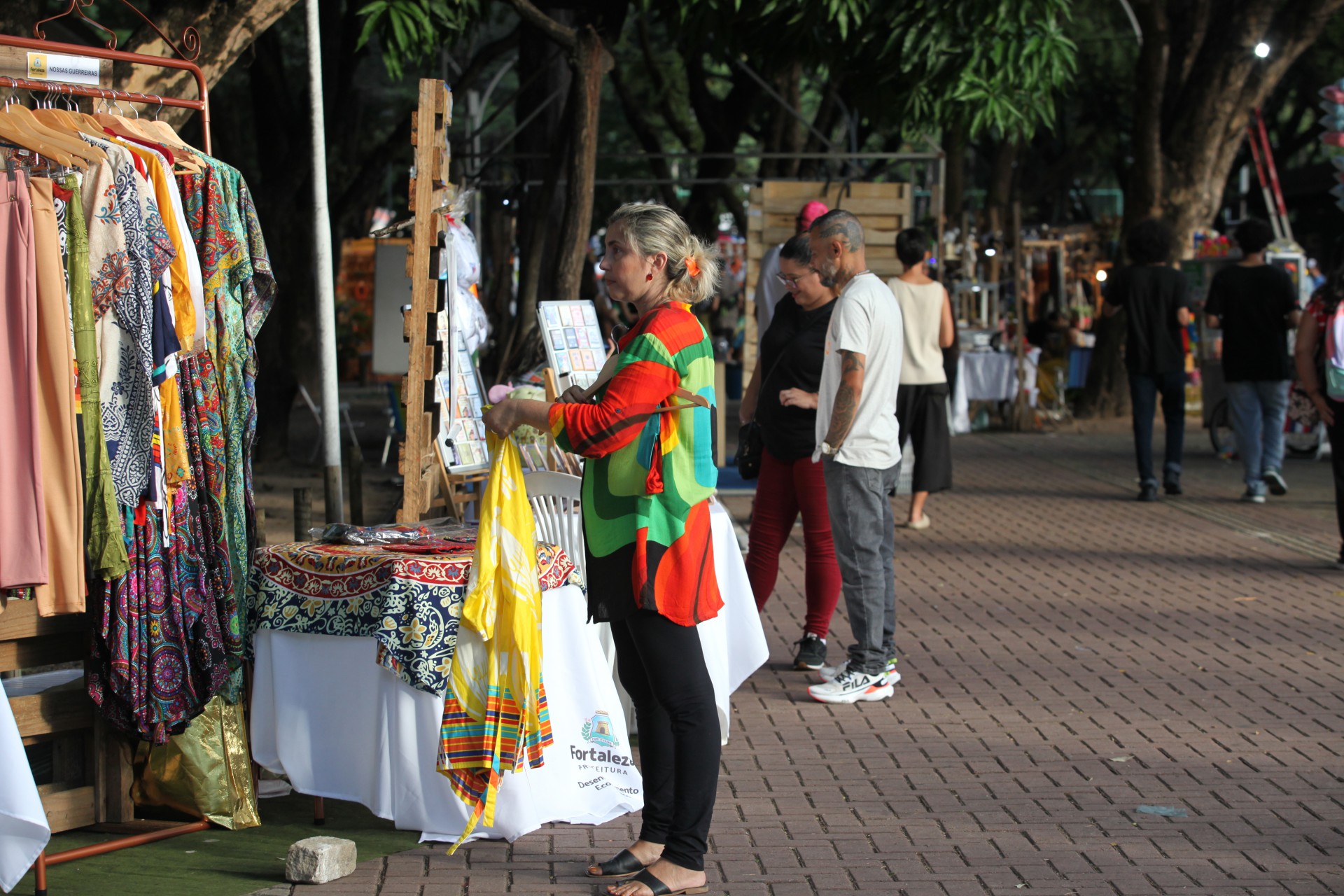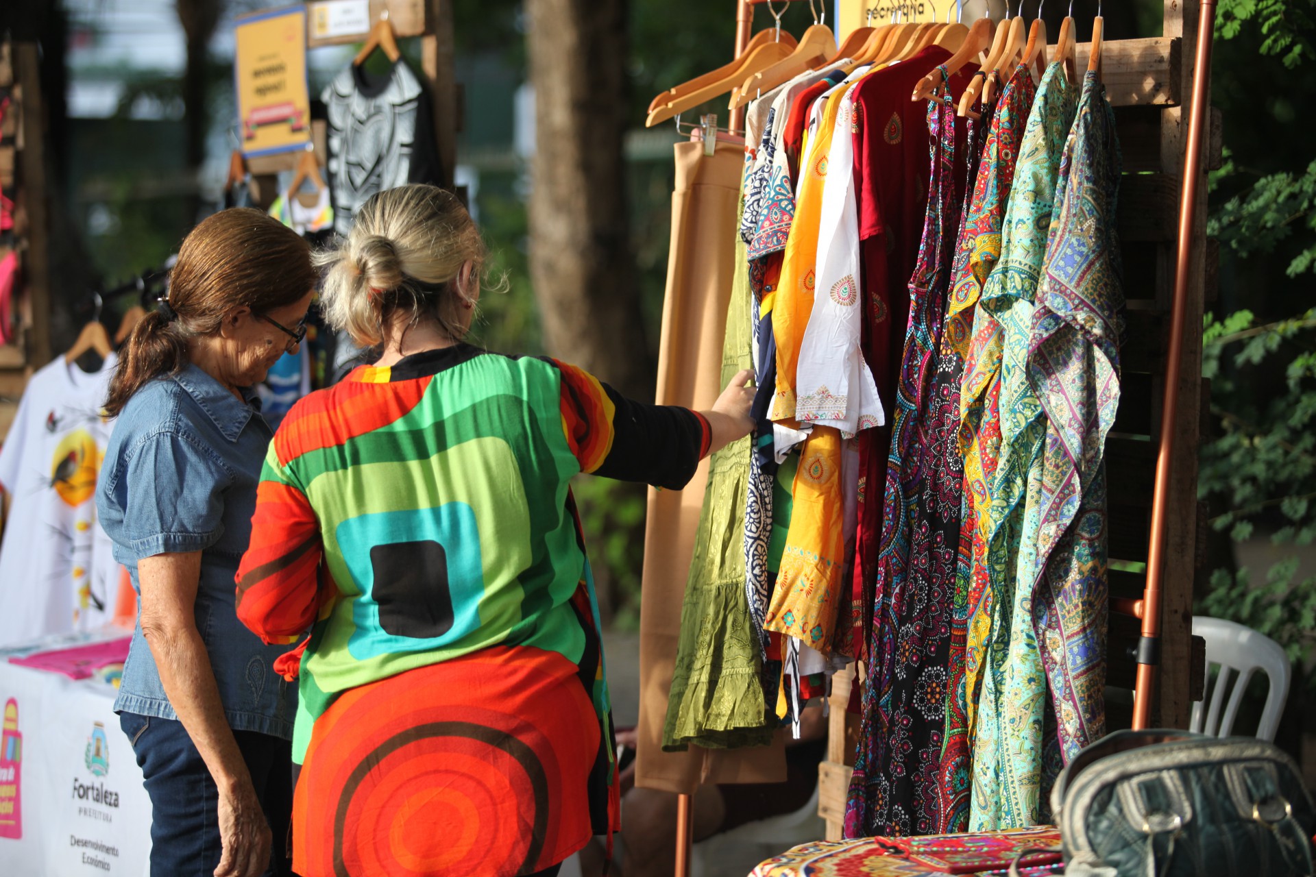 Bolsas, roupas, calçados, porta retrato e até bijuterias. Produtos feitos por artesãos de programas de empreendedorismo da Prefeitura de Fortaleza estavam entre os itens vendidos da Auê Feira Criativa nesse sábado, 8, na Praça das Flores, em Fortaleza.