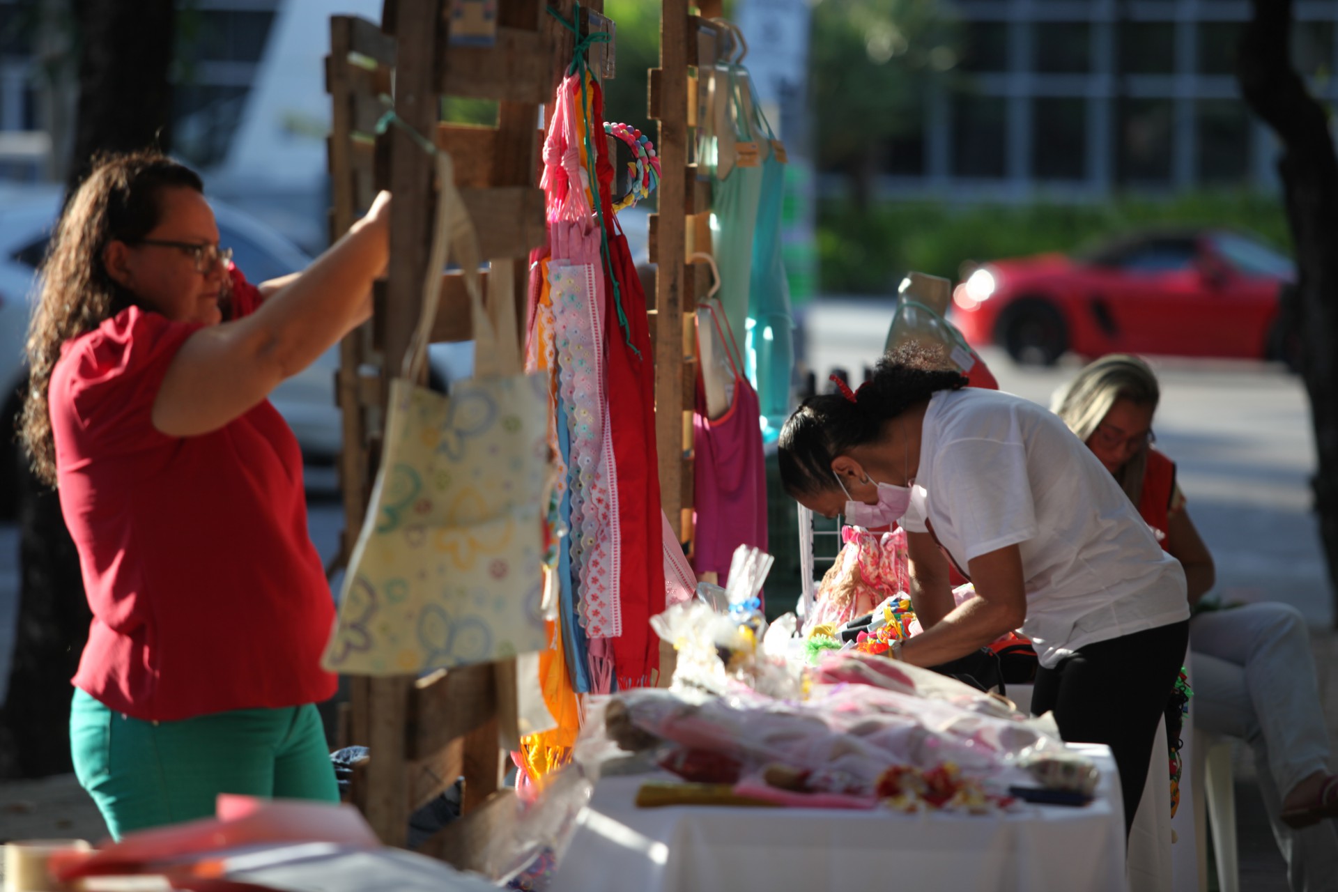 Iniciativa municipal levou pessoas que são cadastradas nos programas "Nossas Guerreiras", "Feiras de Pequenos Negócios" e "Costurando o Futuro" para participarem da feira, atuando em dez stands diferentes. Ação foi idealizada por meio da Secretaria Municipal do Desenvolvimento Econômico (SDE).