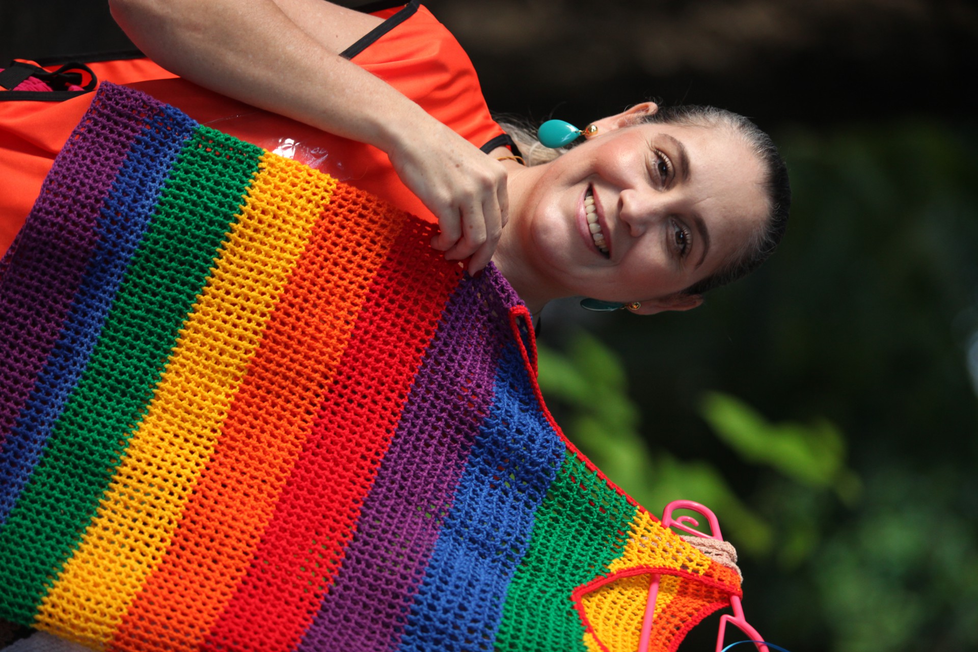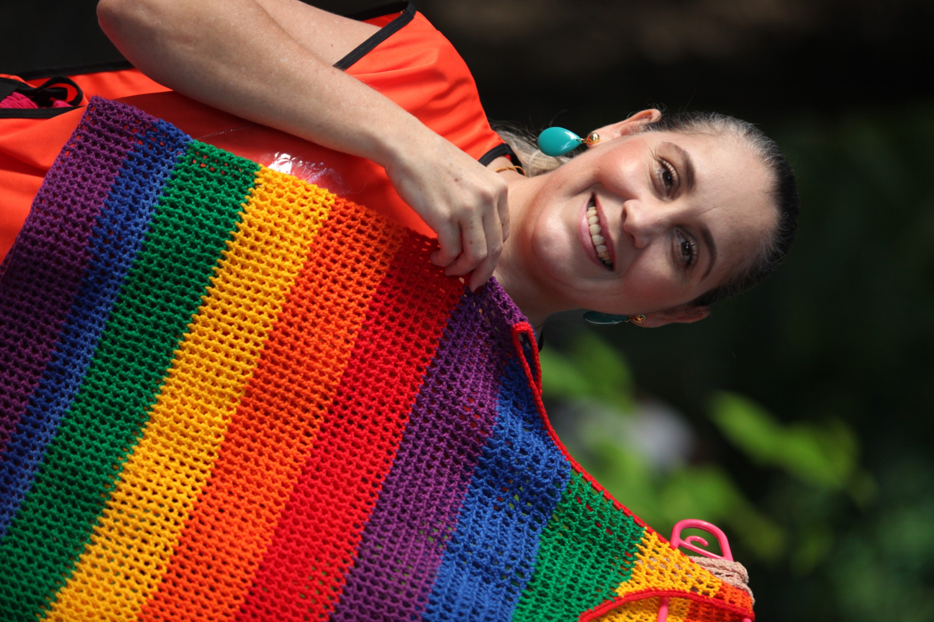 O trabalho é custoso, mas é também por onde se imprime posicionamentos sociais e políticos. Muitas das bolsas que Auriana vende são coloridas em apoio à comunidade LGBTQIA+, causa a qual defende.
