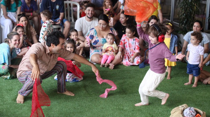 Com a performance do ator e educador Well Fonseca, crianças e adultos vivenciaram uma experiência de gestos e música na manhã do domingo, 9