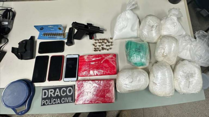 Eles estavam em posse de uma pistola, munições, mais dois quilos de cocaína, aproximadamente nove quilos de um pó branco e uma balança de precisão, além de outros materiais usados no tráfico de entorpecentes. A dupla tentou fugir e agredir um dos agentes, mas foi capturada e levada para a Draco.
