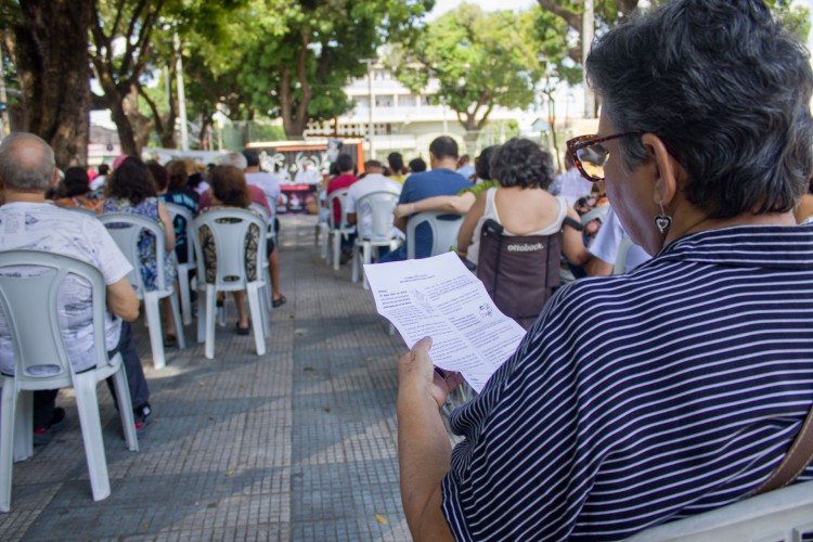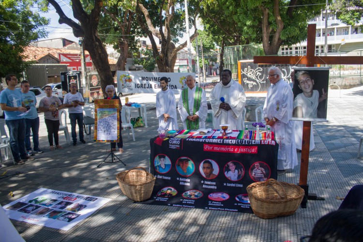 Dezenas de pessoas se reuniram na manhã deste domingo, 20, para manter viva a memória de vítimas da violência letal no Ceará. Entre cantos e ofertórios, a Praça João Gentil, no bairro Gentilândia, em Fortaleza, recebeu uma missa ecumênica do Movimento Igreja em Saída, que reúne organizações católicas do Estado voltadas para ações e debates sociais.