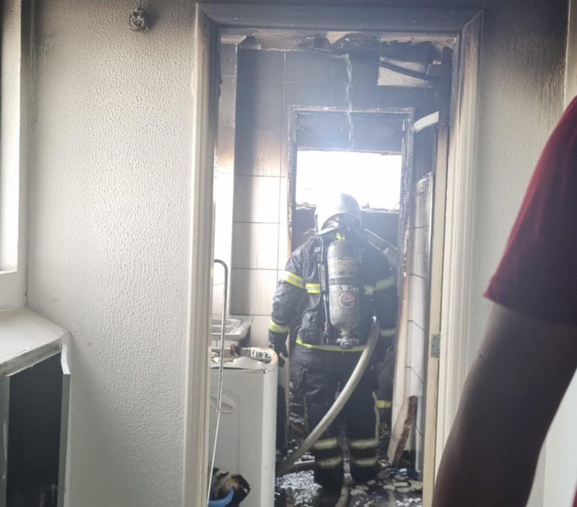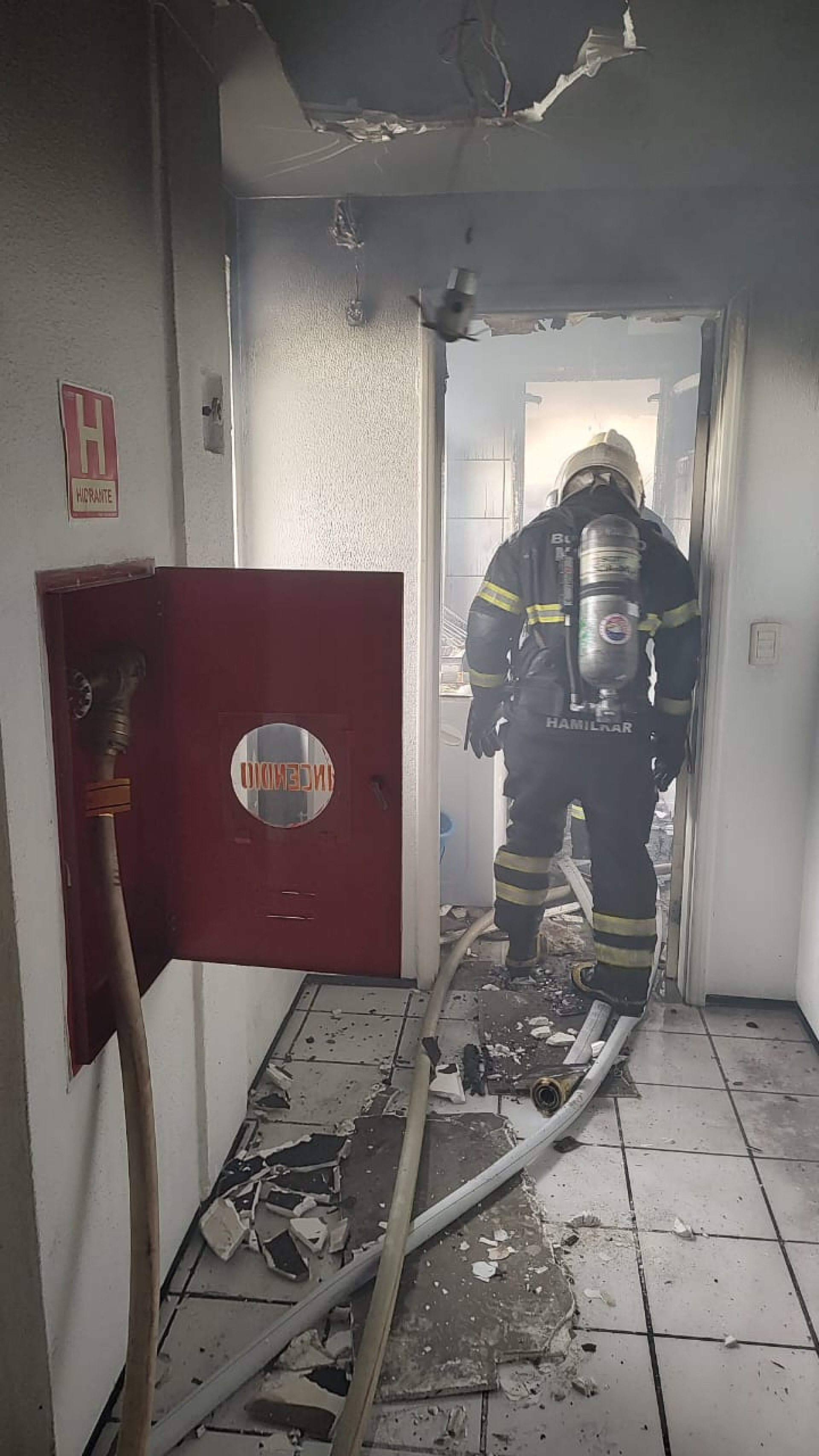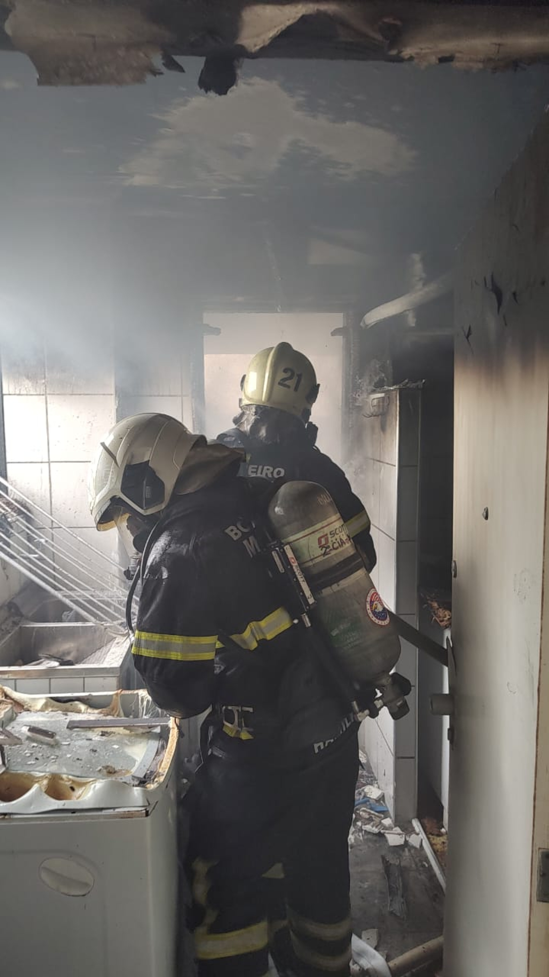 O fogo restringiu-se ao quarto de serviço, que teve perda total. "Pequenos danos foram causados pela capa térmica na cozinha e no teto da sala", completa informe.