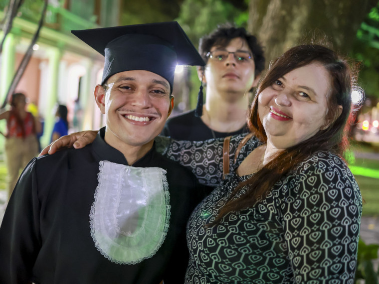 Enquanto o ritual da cerimônia acontecia, como o chamamento de representantes dos cursos e o juramento de formatura, familiares e amigos disputavam por espaço ao redor do centro onde evento ocorria. Com celulares apontados e olhos atentos, todos traziam o mesmo semblante de orgulho.