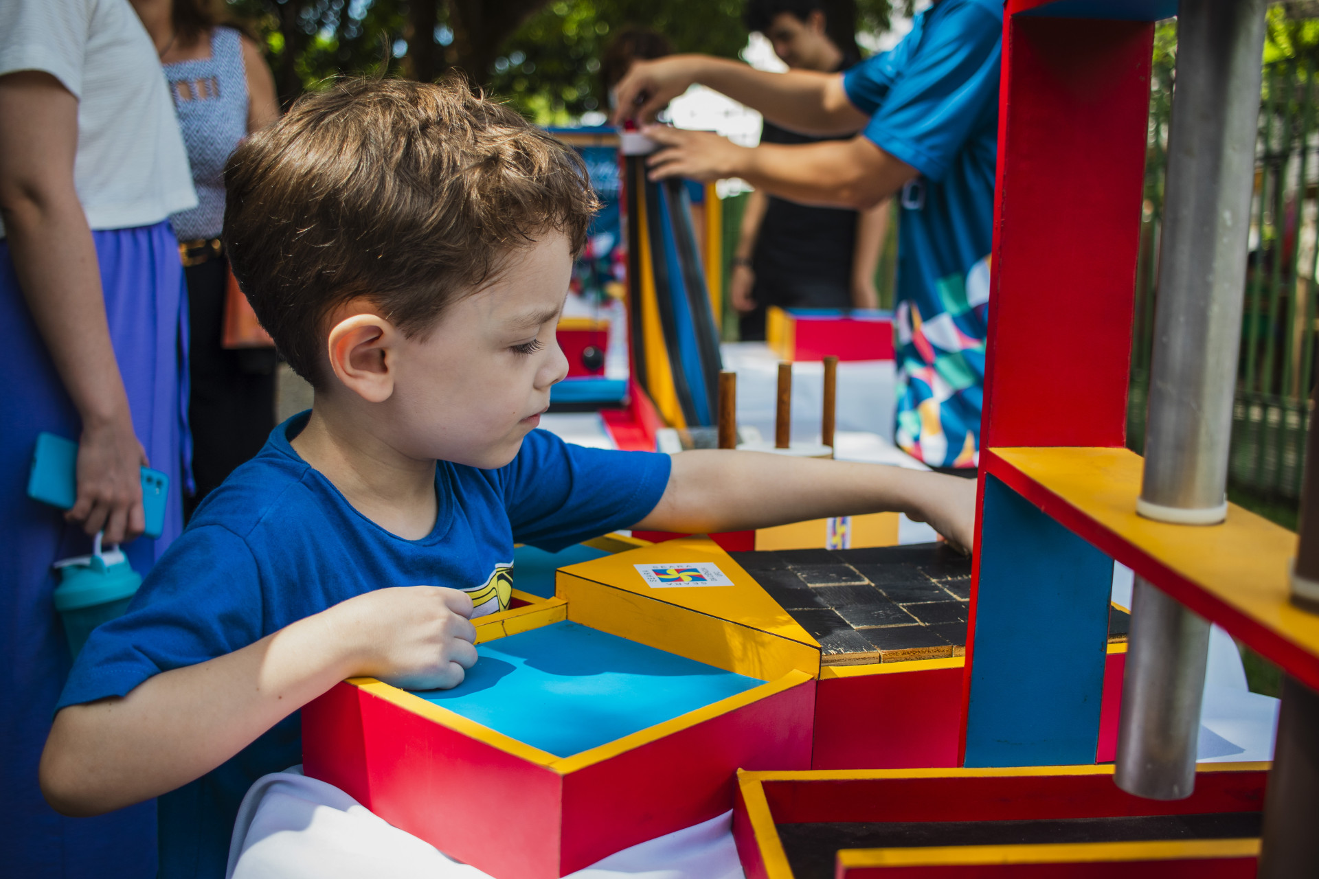 Nos jardins da Reitoria, o pequeno Salomão Borges, começa aprender aos 4 anos alguns princípios da Física que estão presentes no cotidiano. O espaço organizado pela Seara da Ciência conta com experimentos científicos lúdicos e interativos para mostrar a todas as idades o que existe de Ciência em ações simples do dia-a dia.