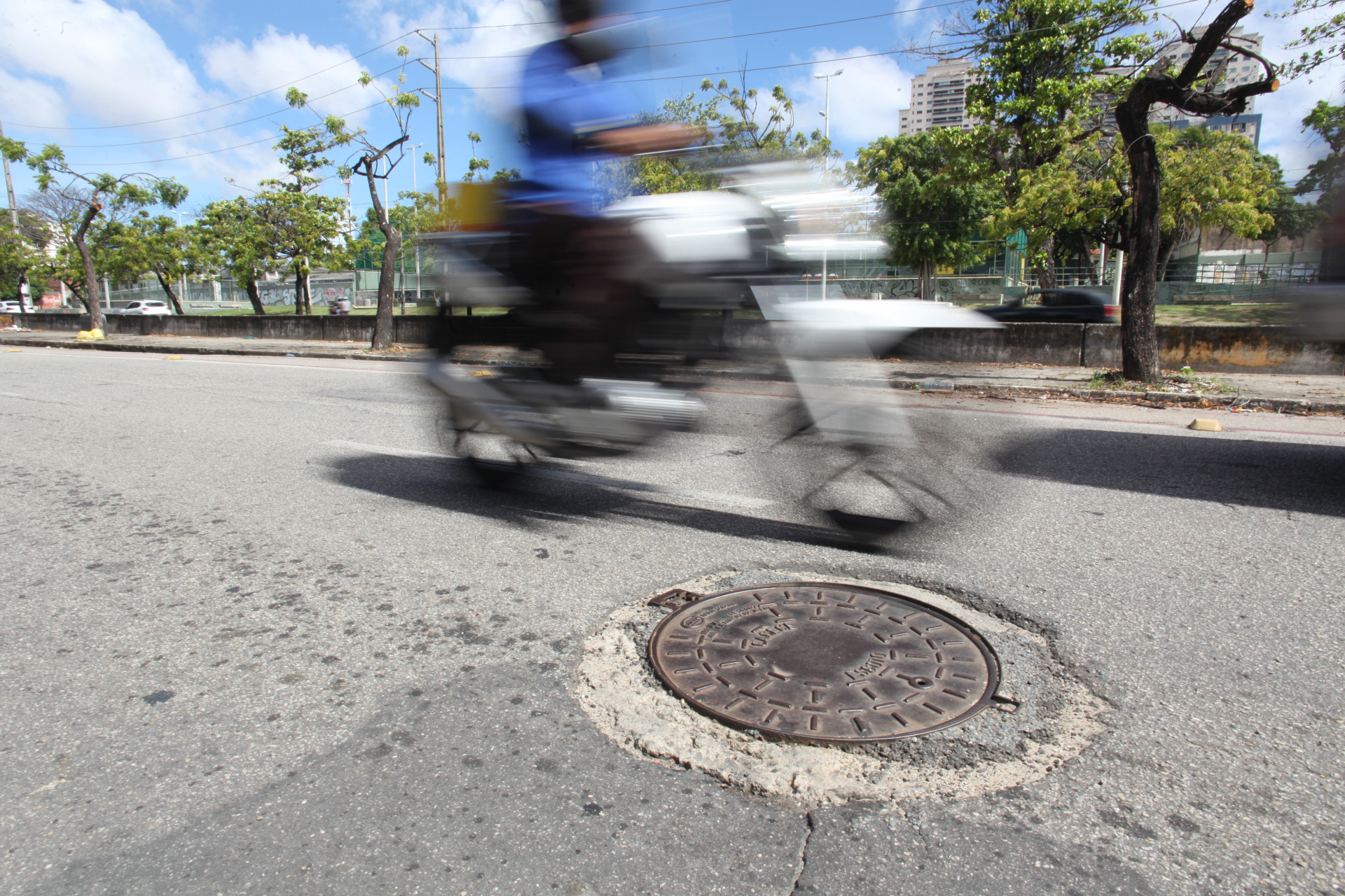 O desnível entre tampas de bueiros e asfalto pode causar acidentes e representar perigo aos motoristas que trafegam pela Cidade. No cruzamento das avenidas Eduardo Girão com Deputado Oswaldo Studart e próximo à Praça Manuel Dias Branco, por exemplo, é possível ver bueiros com tampa acima do nível do asfalto.