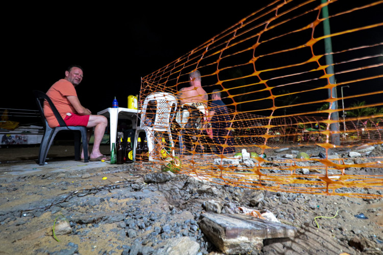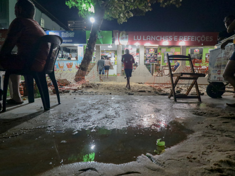 Para consumir as refeições dos locais, clientes sentavam-se em cadeiras do lado de fora dos estabelecimentos, em meio aos resquícios da reforma e ainda sob a água que invadiu o espaço durante a tarde de quinta — em uma ação que tem relação com um fenômeno chamado de "swell".