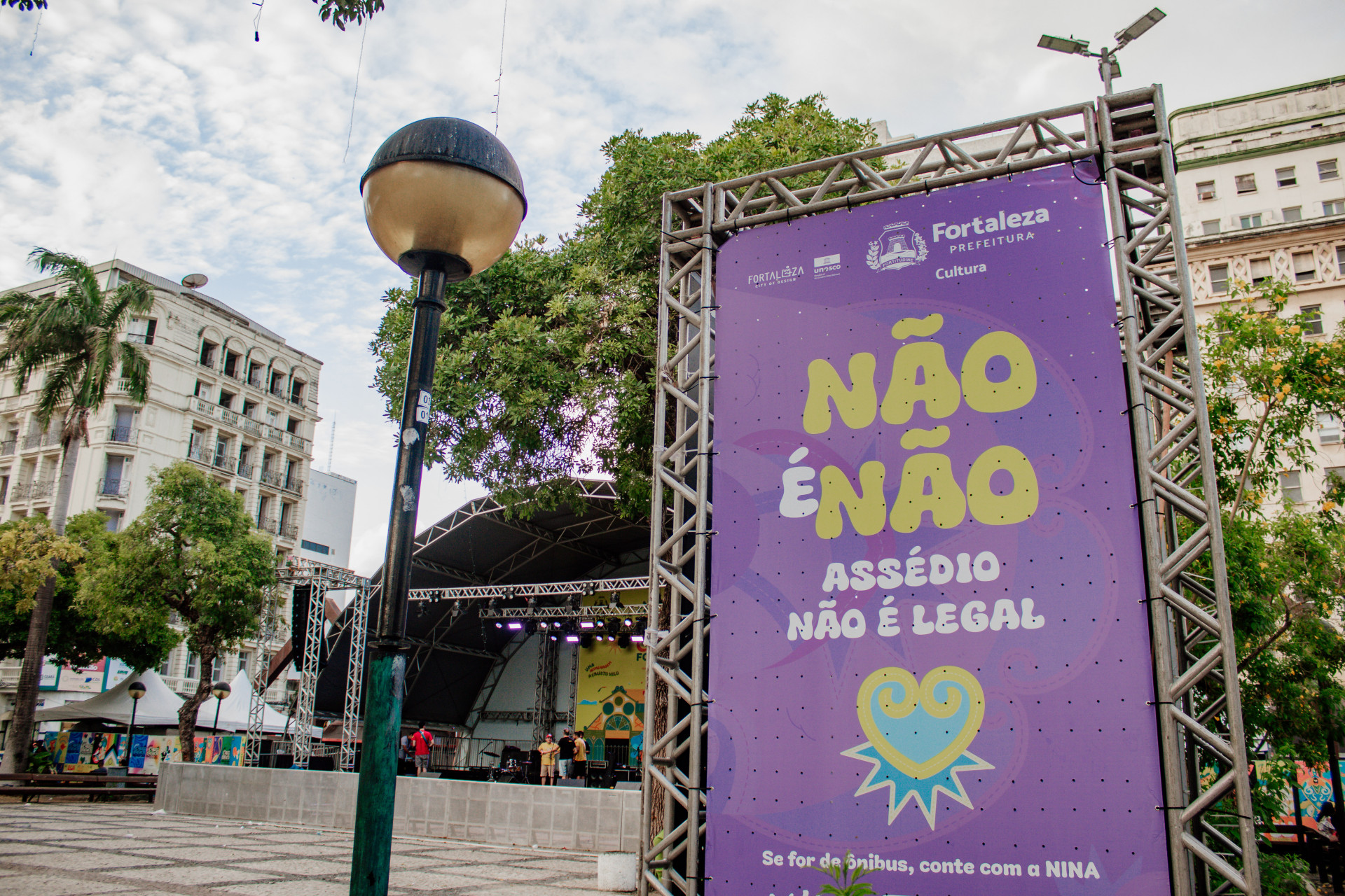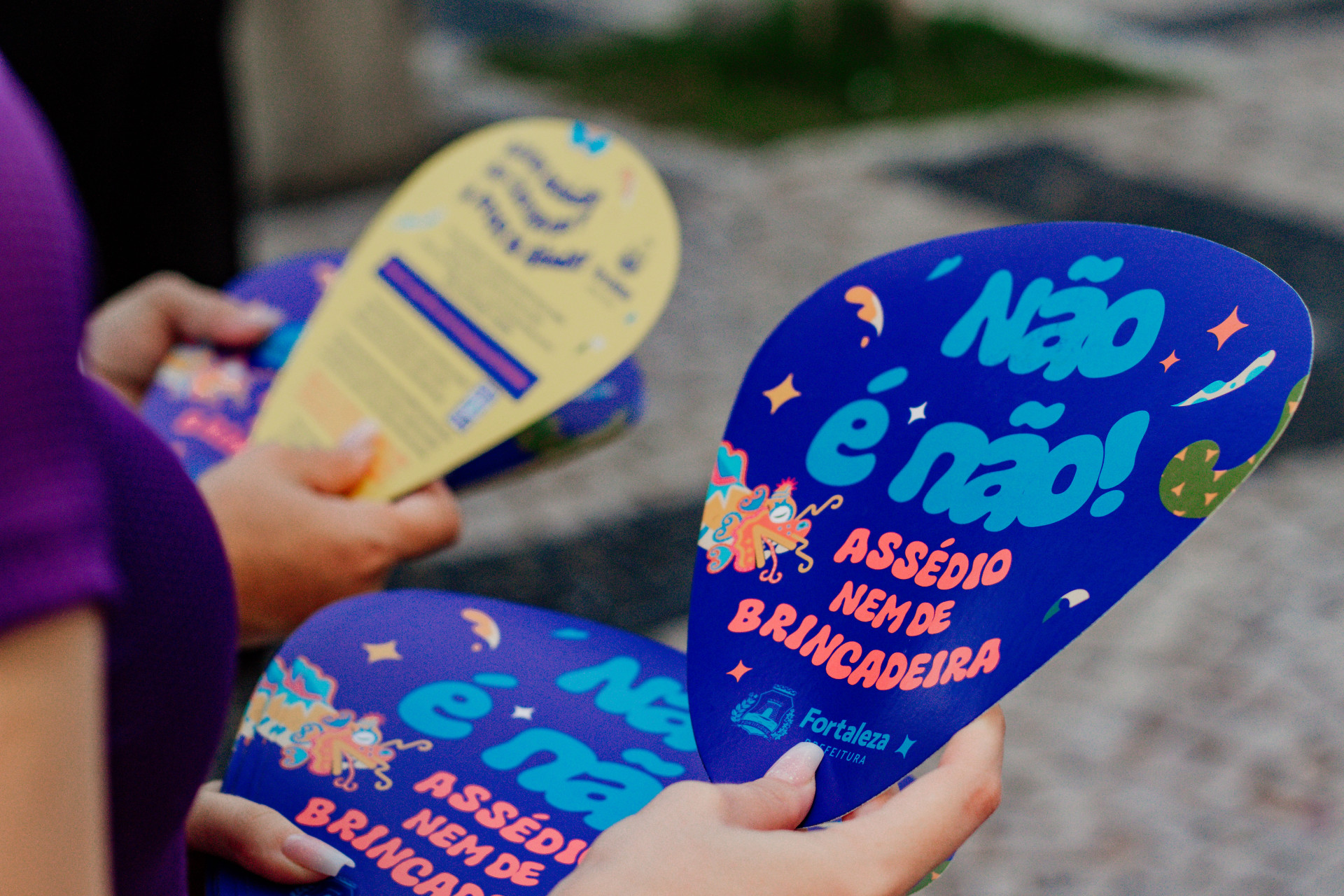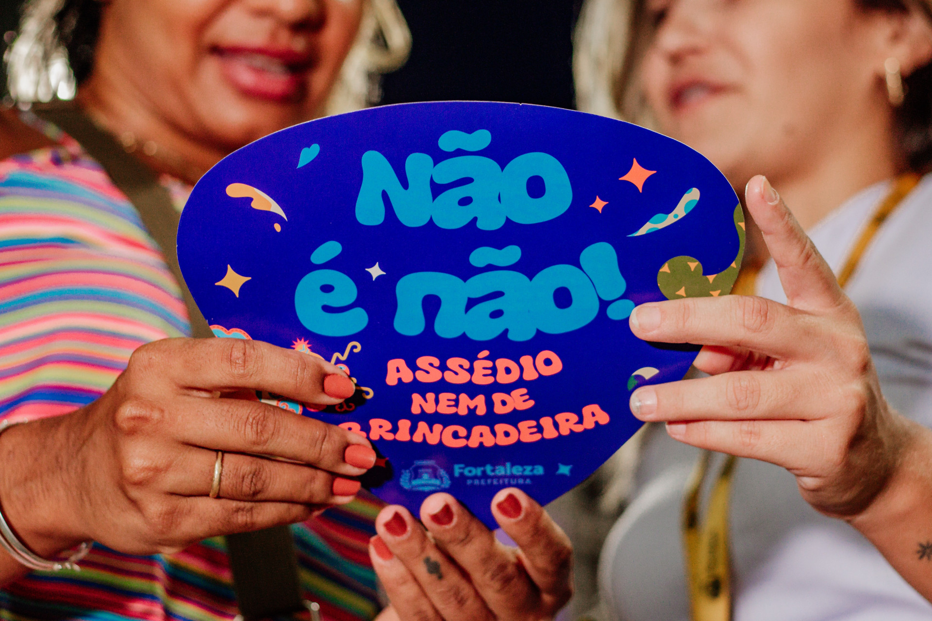 Com o lema “Não é Não, Assédio nem de Brincadeira”, ação foi organizada pela rede municipal de proteção às mulheres vítimas de violência e contou com a participação de órgãos como a Coordenadoria Especial de Políticas Públicas para Mulheres, vinculada a Secretaria dos Direitos Humanos e Desenvolvimento Social de Fortaleza (SDHDS), e o Grupo Especializado Maria da Penha (GEMP), da Guarda Municipal (GMF).