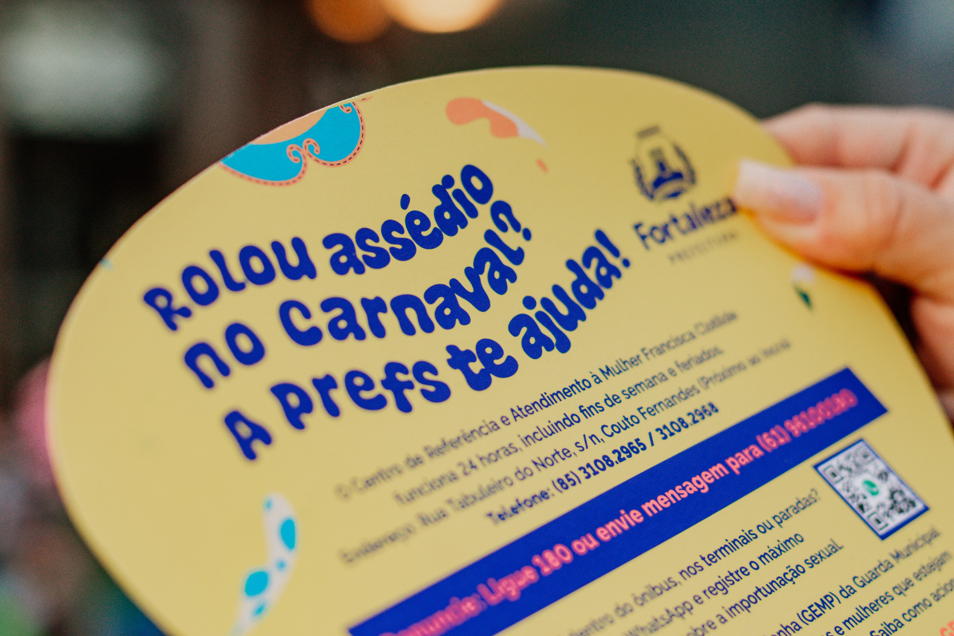 O terceiro dia de Pré-Carnaval na Praça do Ferreira, em Fortaleza, nesta sexta-feira, 26, foi reforçado por uma campanha contra o assédio e importunação sexual. Realizada pela Prefeitura, ação deve se estender até o dia 9 de fevereiro próximo e acontece também em outros polos carnavalescos. Objetivo é direcionar mulheres sobre onde procurar ajuda em caso de serem vitimadas por crimes como esses.