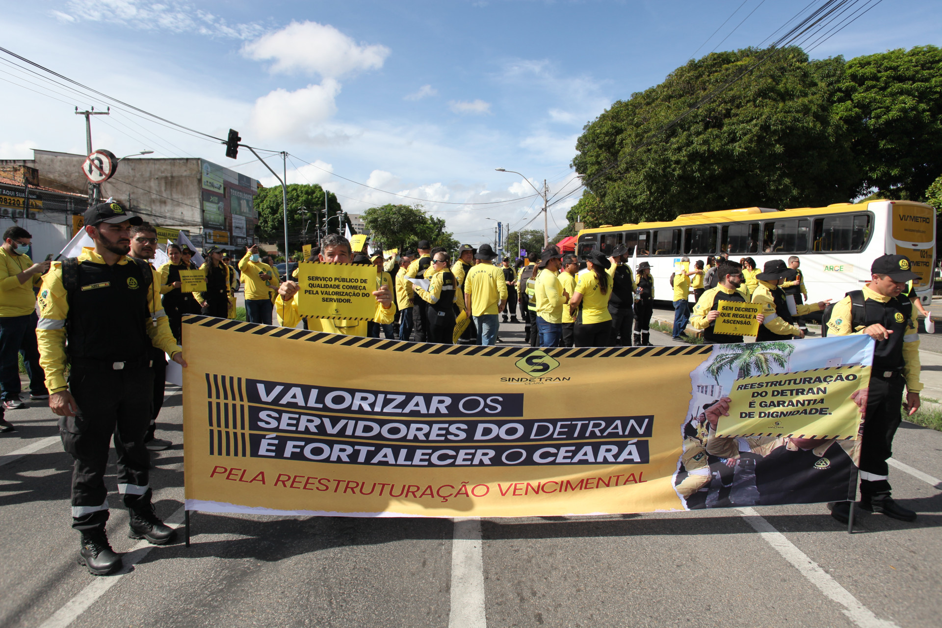 Parte dos serviços ofertados pelo Departamento Estadual de Trânsito (Detran/CE) foi suspenso na manhã desta segunda-feira, 4, devido à manifestação realizada pelo Sindicato dos Trabalhadores na Área de Trânsito do Estado do Ceará (Sindetran-CE). O ato reuniu servidores do órgão em um dos trechos da avenida Godofredo Maciel, no bairro Maraponga, em Fortaleza.
