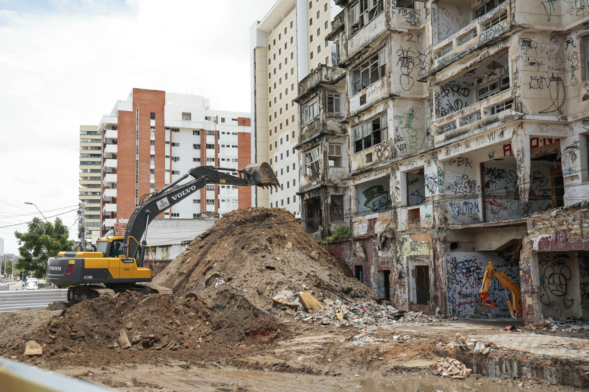 Na Praia de Iracema, o som de máquinas e funcionários trabalhando agora é claramente ouvido nos arredores do prédio deteriorado. Mesmo do lado de fora da barreira feita de tapumes, além de duas robustas máquinas escavadeiras e tendas de proteção, também é notável um monte de areia.