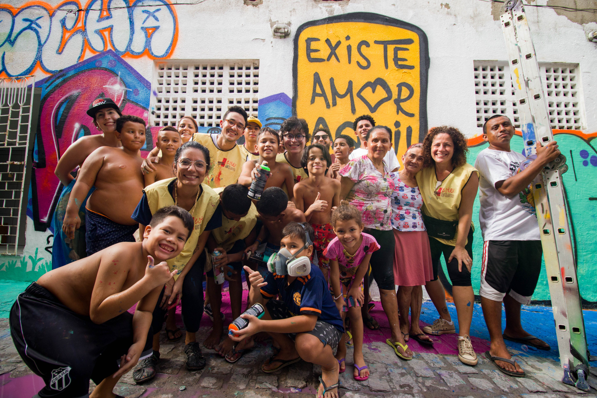Entre os grafiteiros convidados pelo grupo para colorir as ruas, os artistas visuais e muralistas Wesley Rocha, do Grande Bom Jardim, e Bheo, do Jardim das Oliveiras, que defendem a forma de expressão oriunda das periferias e contaram com o reforço de peso das crianças e demais moradores.