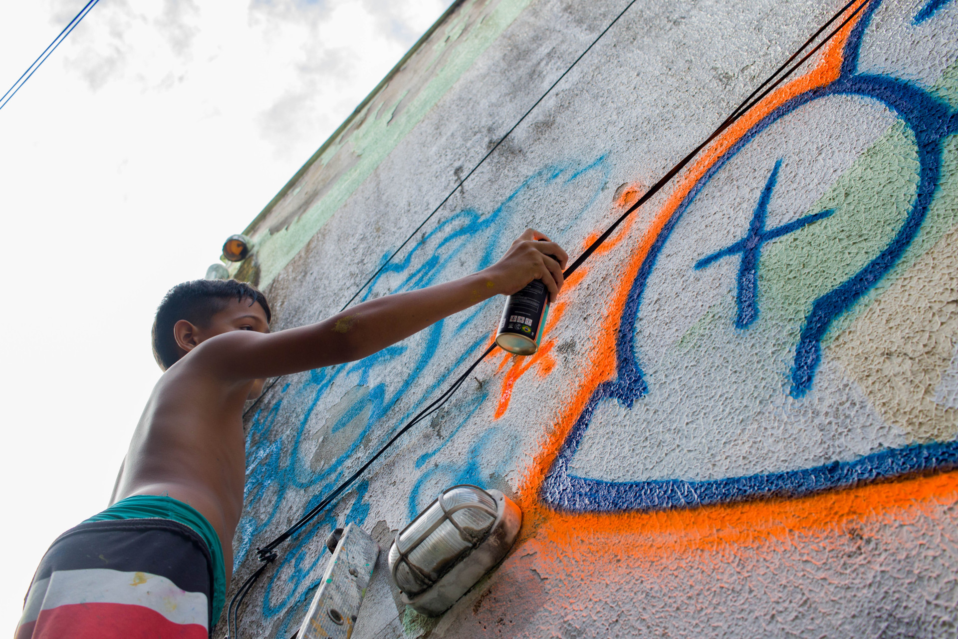 “O graffiti vem da periferia, então para a gente, que é artista urbano, a gente prioriza muito fazer essas intervenções dentro das comunidades, tanto para a ela ter acesso à arte quanto para que possa se expressar e contar a própria história, a história do território onde ela está inserida”, diz Rocha.