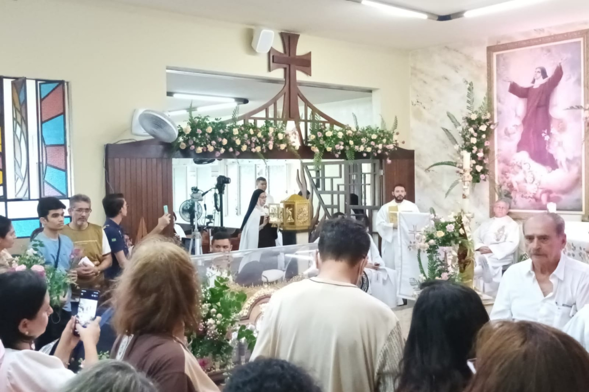 Entre estes estava Germana Moreira, 40, que desde 2021 tem frequentado o Carmelo e se aprofundado sobre a história de Santa Teresinha. A religiosa conta ter acompanhado toda a passagem das relíquias pela Capital, desde a acolhida, na última quinta-feira, e descreve a emoção de estar próxima à Santa de devoção.
