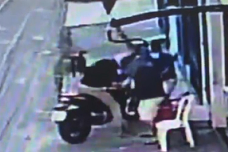 As imagens mostram o criminoso caminhando pela calçada e apontando uma arma de fogo para o cabo. Em seguida, aparece um homem em uma moto para dar suporte à ação. O PM, que estava armado, entra em luta corporal com os assaltantes e é baleado. Em seguida, a dupla foge na moto.