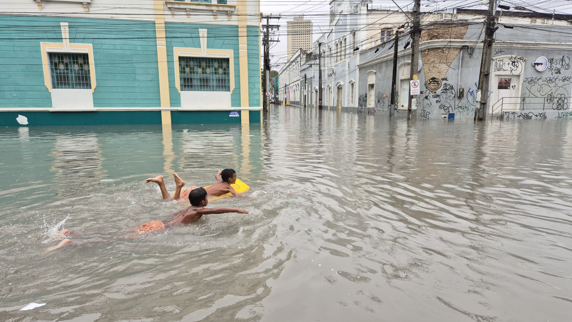 As chuvas registradas ao longo da manhã desta quinta-feira, 30, feriado de Corpus Christi, em Fortaleza, provocaram alagamentos em ruas de diversos bairros da Capital, como Conjunto Palmeiras, Meireles, Messejana, Cambeba e Centro.