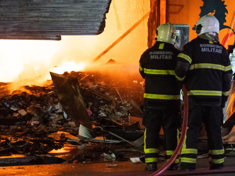 A corporação foi acionada às 19 horas, com a primeira equipe chegando ao local por volta das 19h15min. A estimativa é que o trabalho do Corpo de Bombeiros avance pela madrugada, devido a quantidade de material inflamável que havia nas lojas. Combate ao fogo conta com mais de 50 profissionais e dez viaturas.