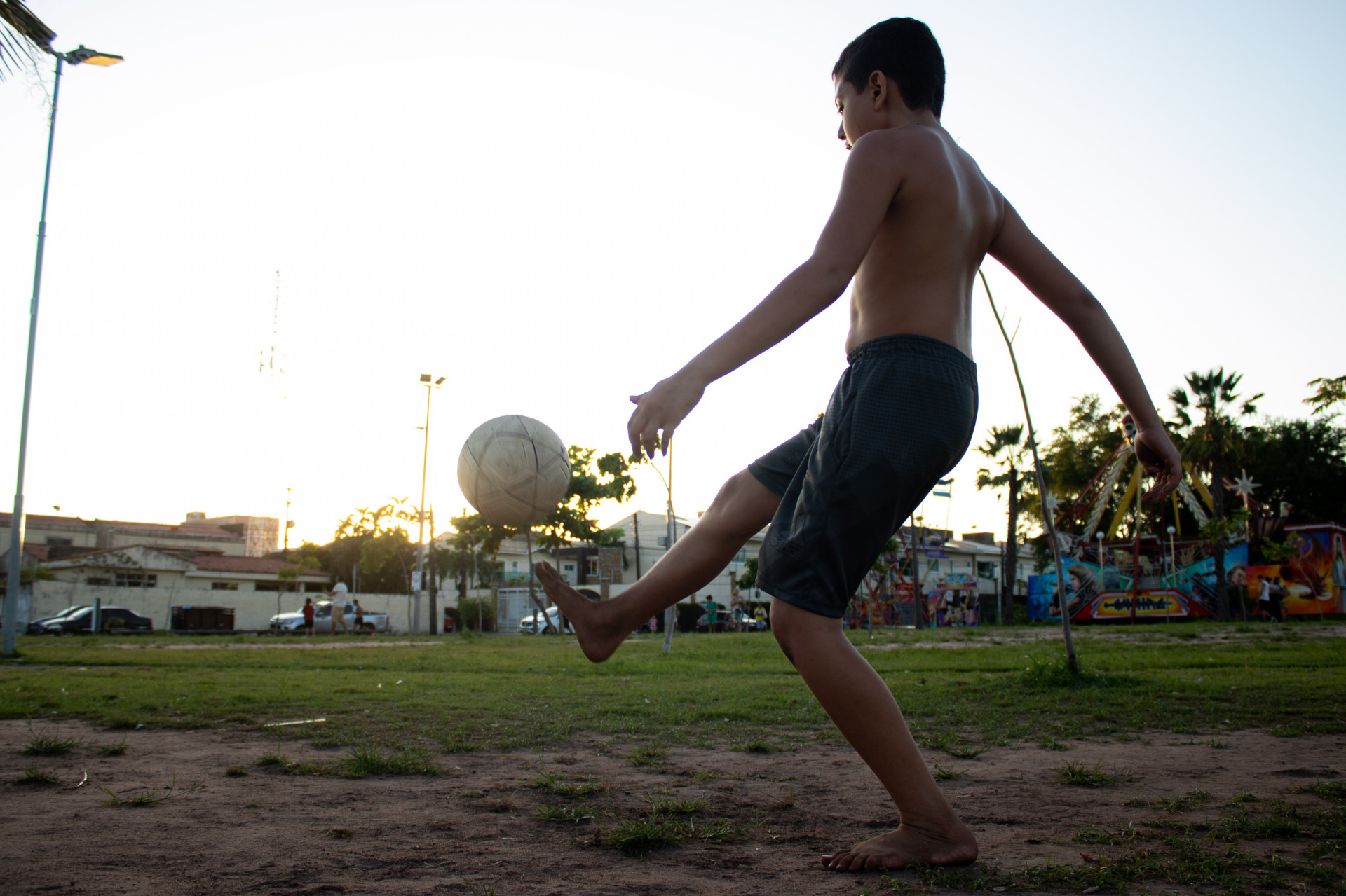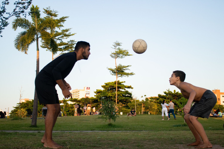 Os irmãos, que moram em Caucaia, na Região Metropolitana de Fortaleza (RMF), aproveitaram a tarde para jogar altinha. “Fazia bastante tempo que ele me pedia para vir. Aqui, tem muito espaço. Acho muito importante ter esse tempinho de lazer e para gastar energia, porque dentro de casa não gasta tanto”, diz.