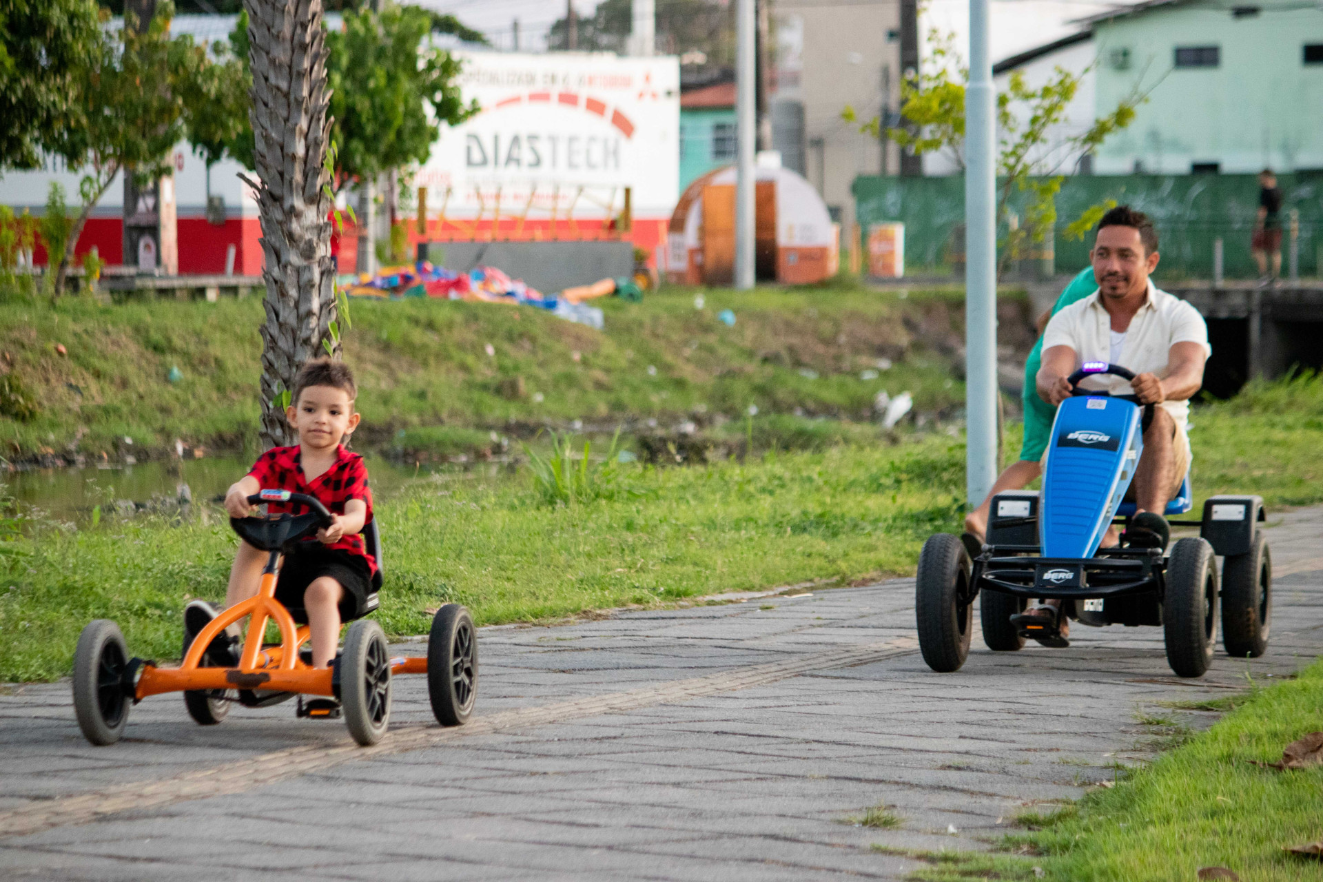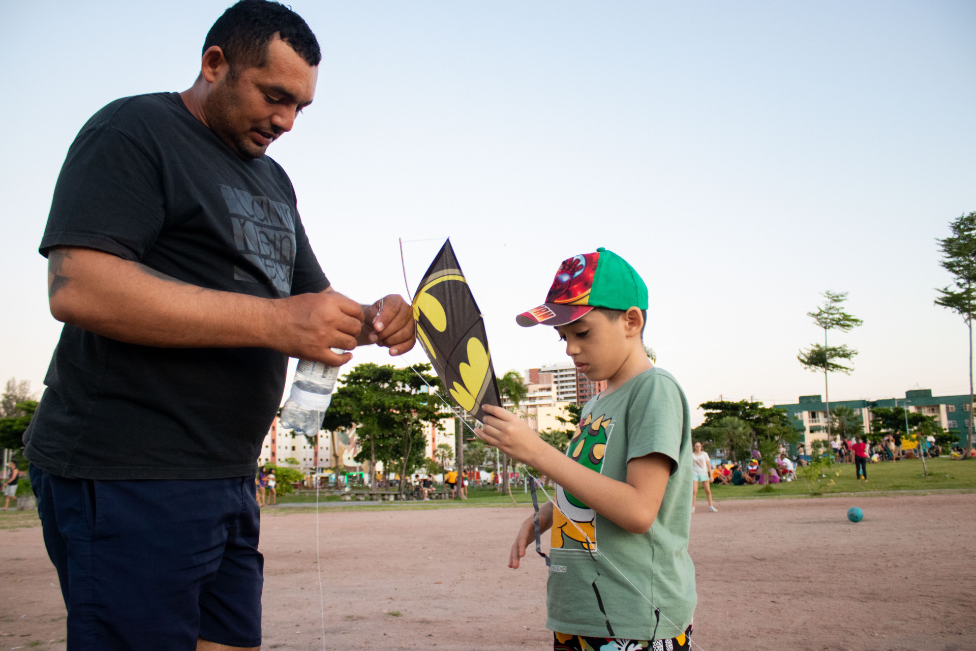 Ambos são moradores do bairro Bela Vista e, para Calos, durante as férias escolares existe a preocupação de a criança ficar presa em casa. A expectativa é que os dois consigam fazer programações juntos ao longo do período de descanso escolar do filho. No local, duas atividades movimentam a dupla: soltar pipa e jogar bola.