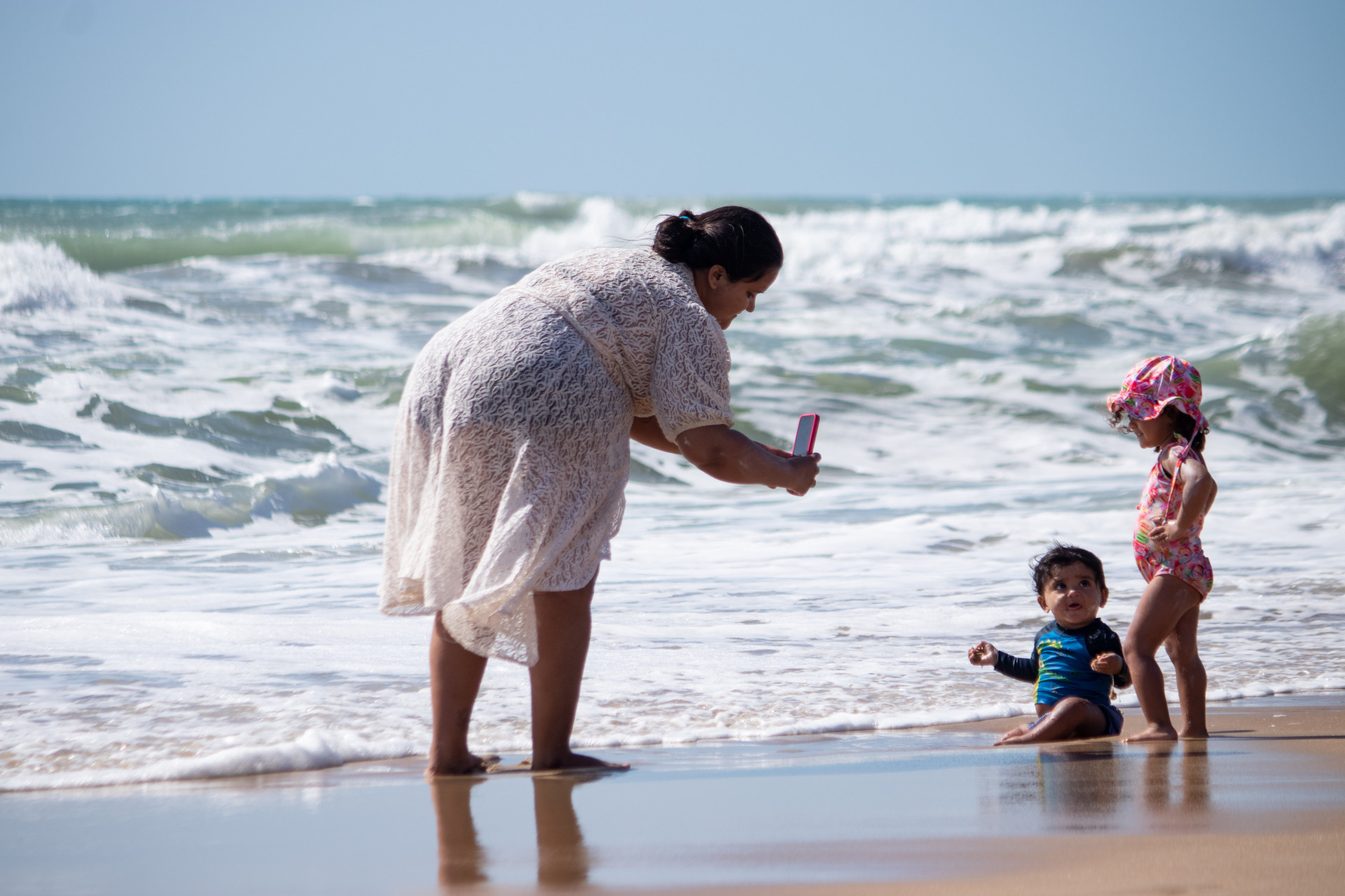 “Sempre olho no aplicativo da Tábua da Maré, para ver como o mar está. Hoje, eu vi que a maré estava um pouco cheia, mas ainda boa o suficiente para tomar banho. Também olho neles direto”, conta a mãe.