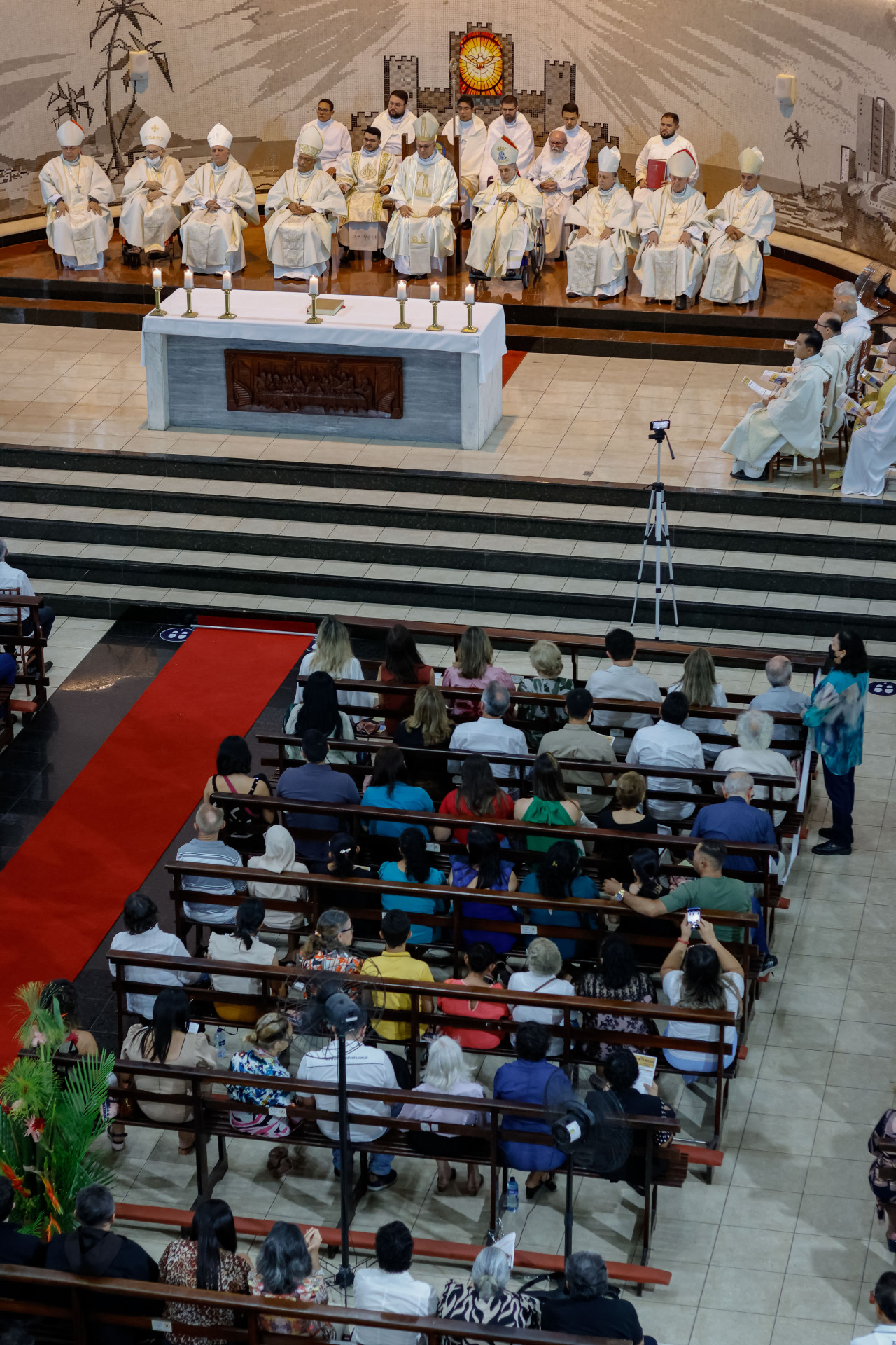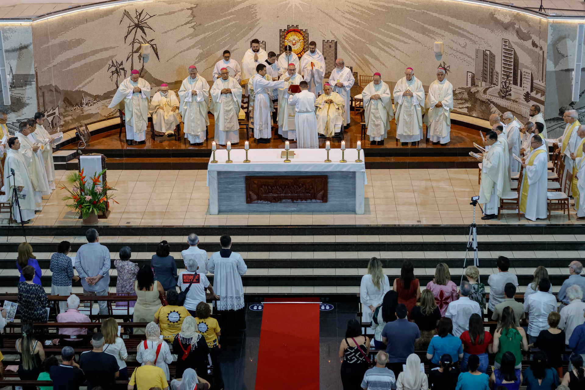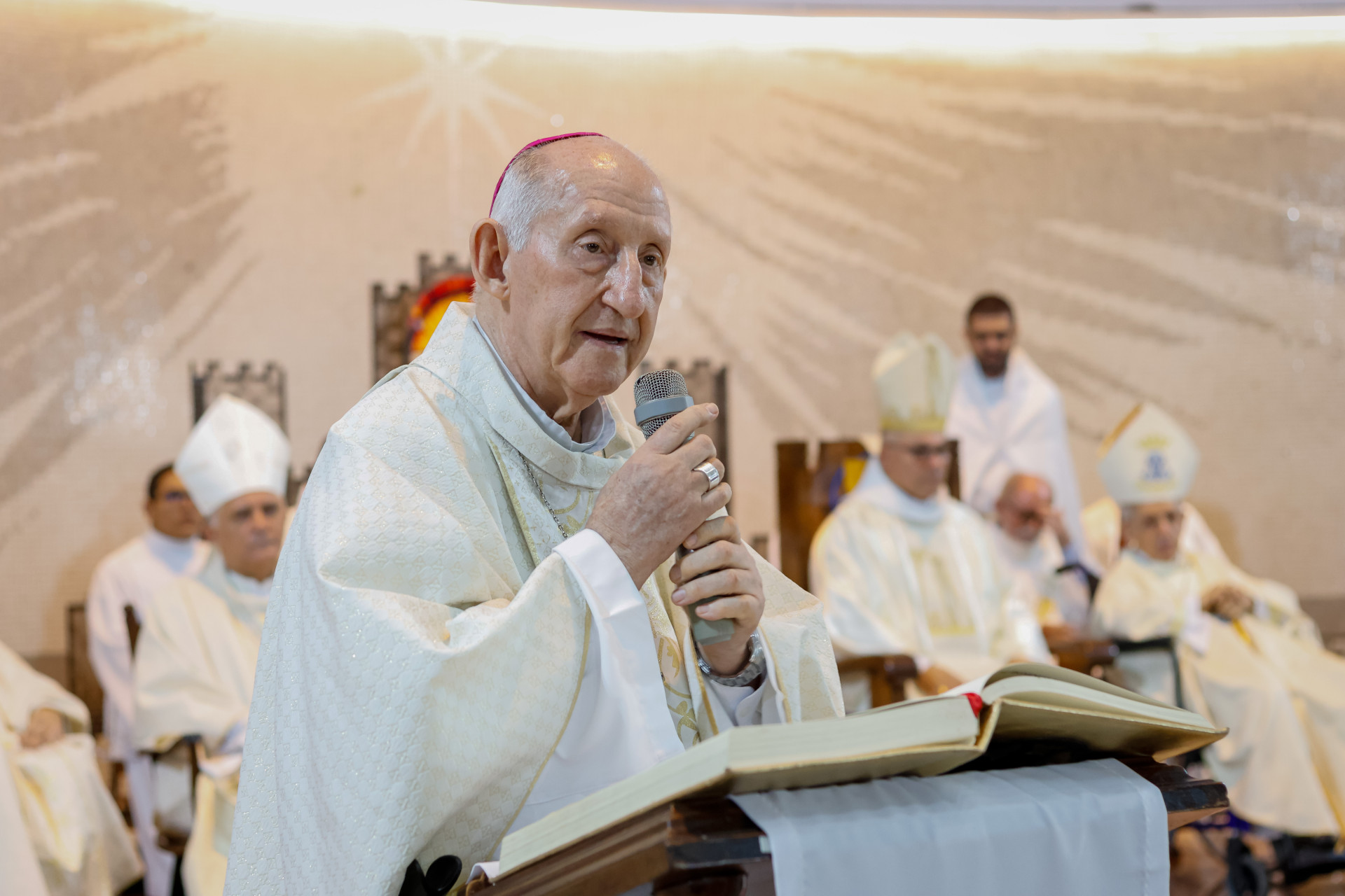 Já durante a celebração, dom Edmilson teve a trajetória lembrada aos fiéis presentes. Público foi convidado a doar alimentos no local, que serão destinados a comunidades vulneráveis.