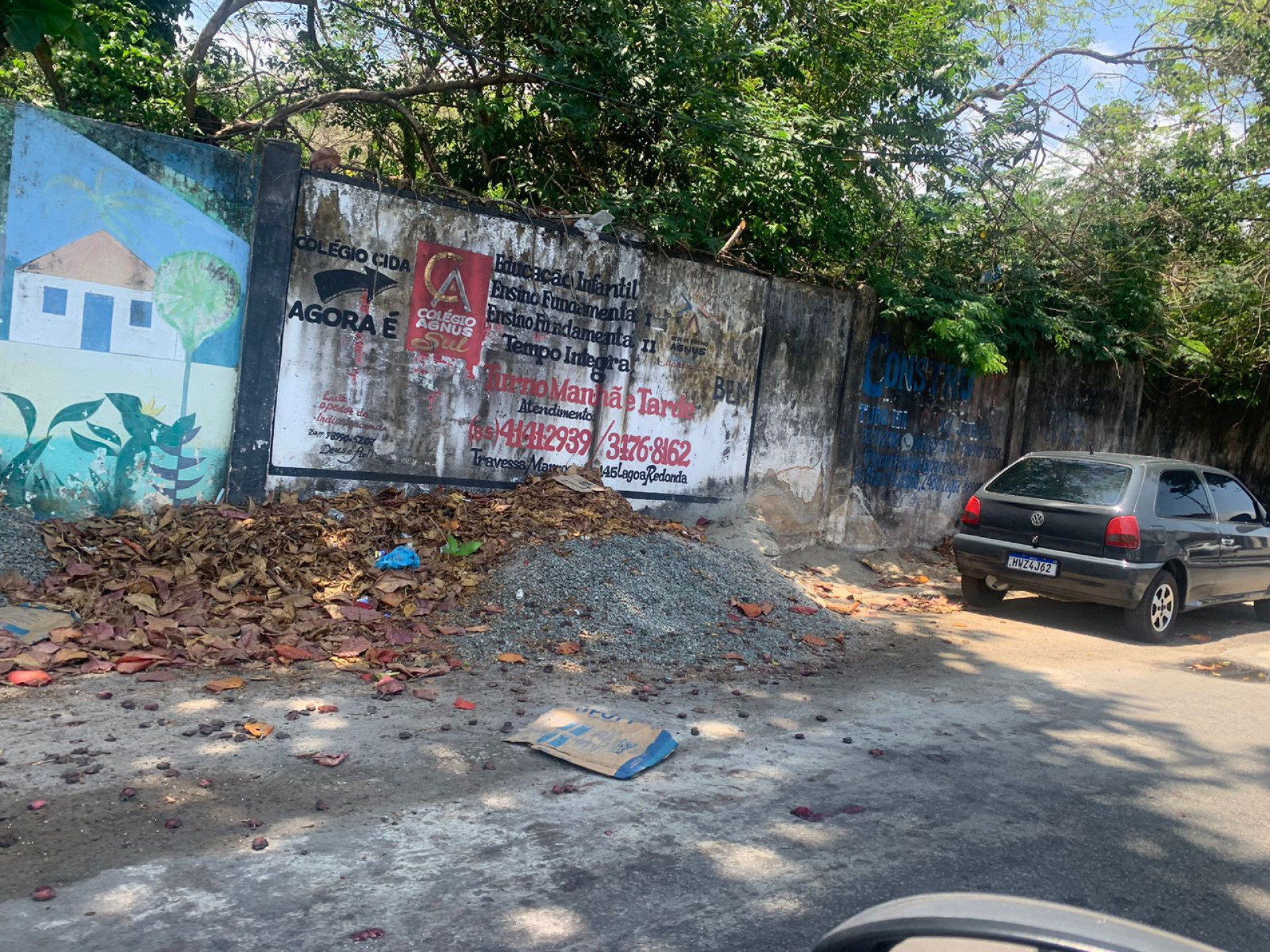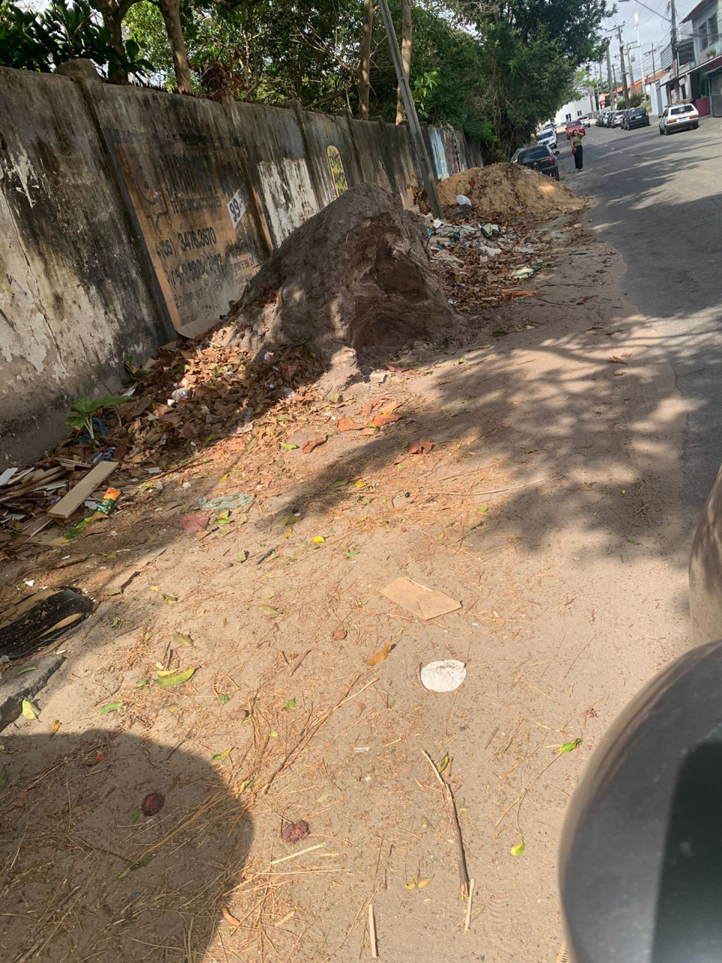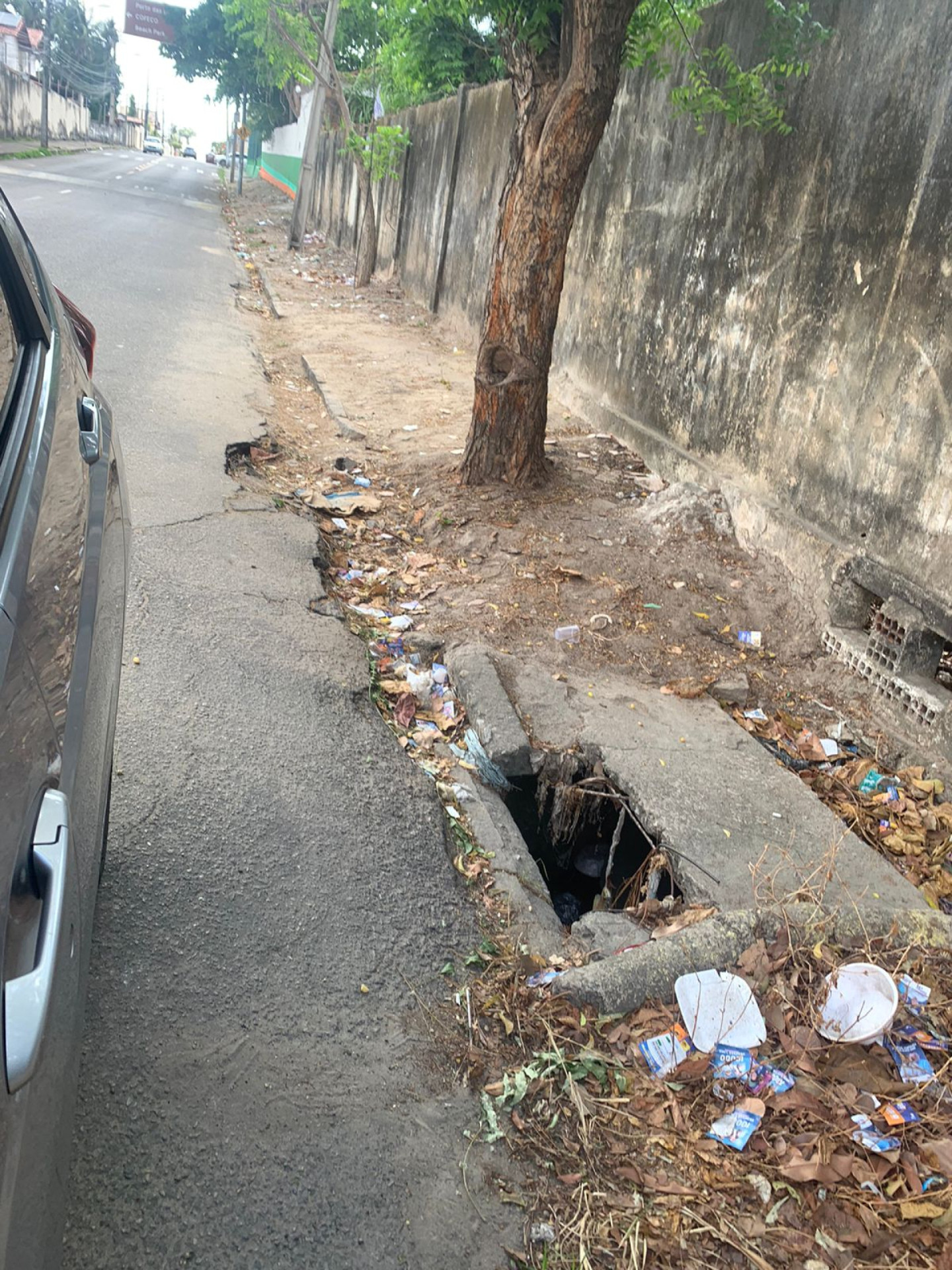 O local também teria uma boca de lobo no canto da calçada, que estaria sendo encoberta pelas folhas, sacolas plásticas e entulhos presentes, o que pode ocasionar quedas de transeuntes