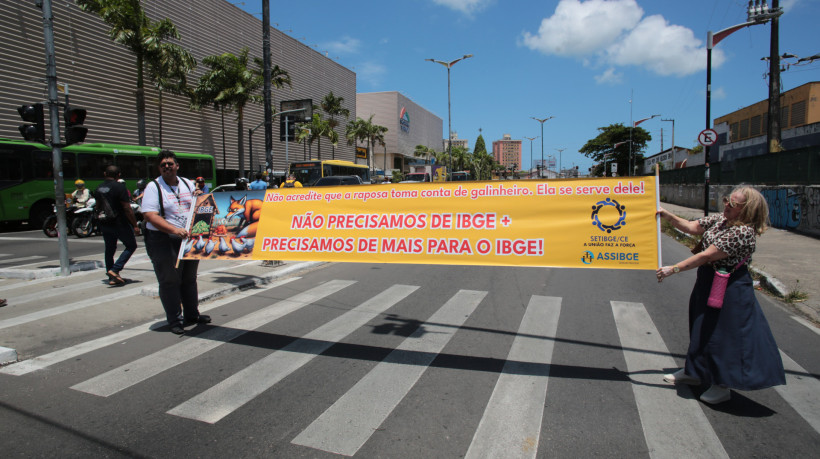 Servidores do Instituto Brasileiro de Geografia e Estatística (IBGE) realizaram manifestação na manhã desta quinta-feira, 31, contra a Fundação IBGE+. O ato ocorreu no bairro Benfica, próximo da sede do Instituto no Ceará. Criada em julho de 2024 como uma “fundação de apoio à inovação científica e tecnológica do IBGE”, a IBGE+ tem sido criticada pelos servidores devido a preocupações sobre a autonomia do Instituto e o risco de comprometer sua credibilidade e imparcialidade.