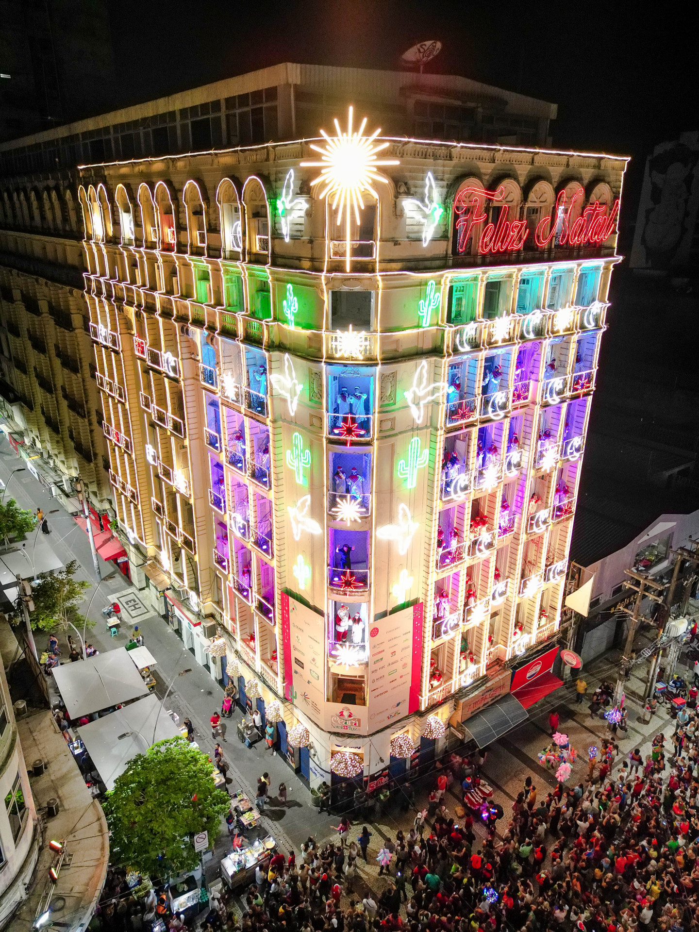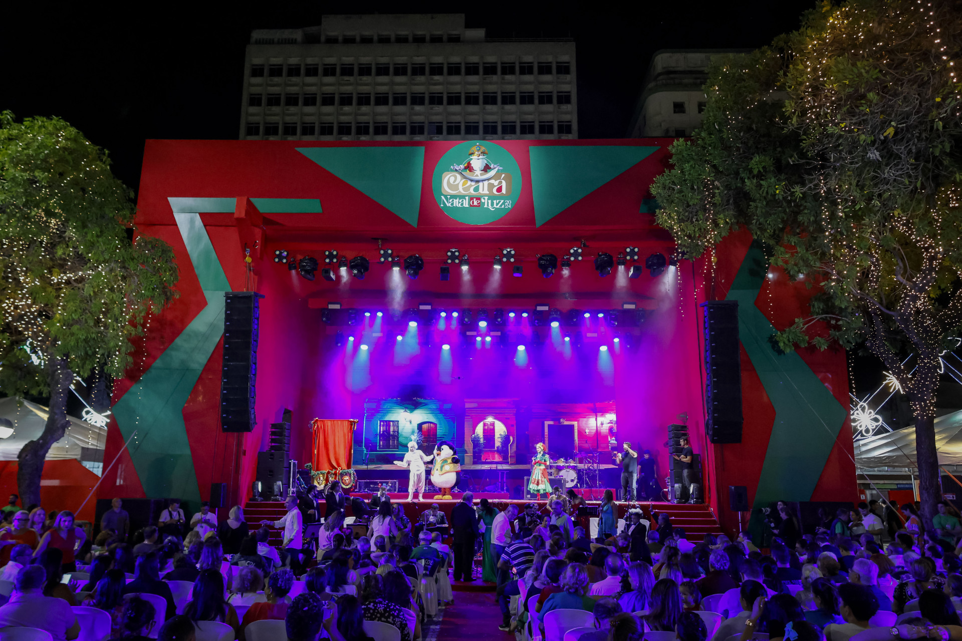Sentados ou em pé, o público viu as apresentações de teatro da Camerata Villa Lobos e do tradicional Coral da Luz, formado por crianças e cuja apresentação se dividiu entre o palco principal e as sacadas do Hotel Excelsior. Também huve chegada do Papai Noel, que surgiu de jangada no meio da Praça.