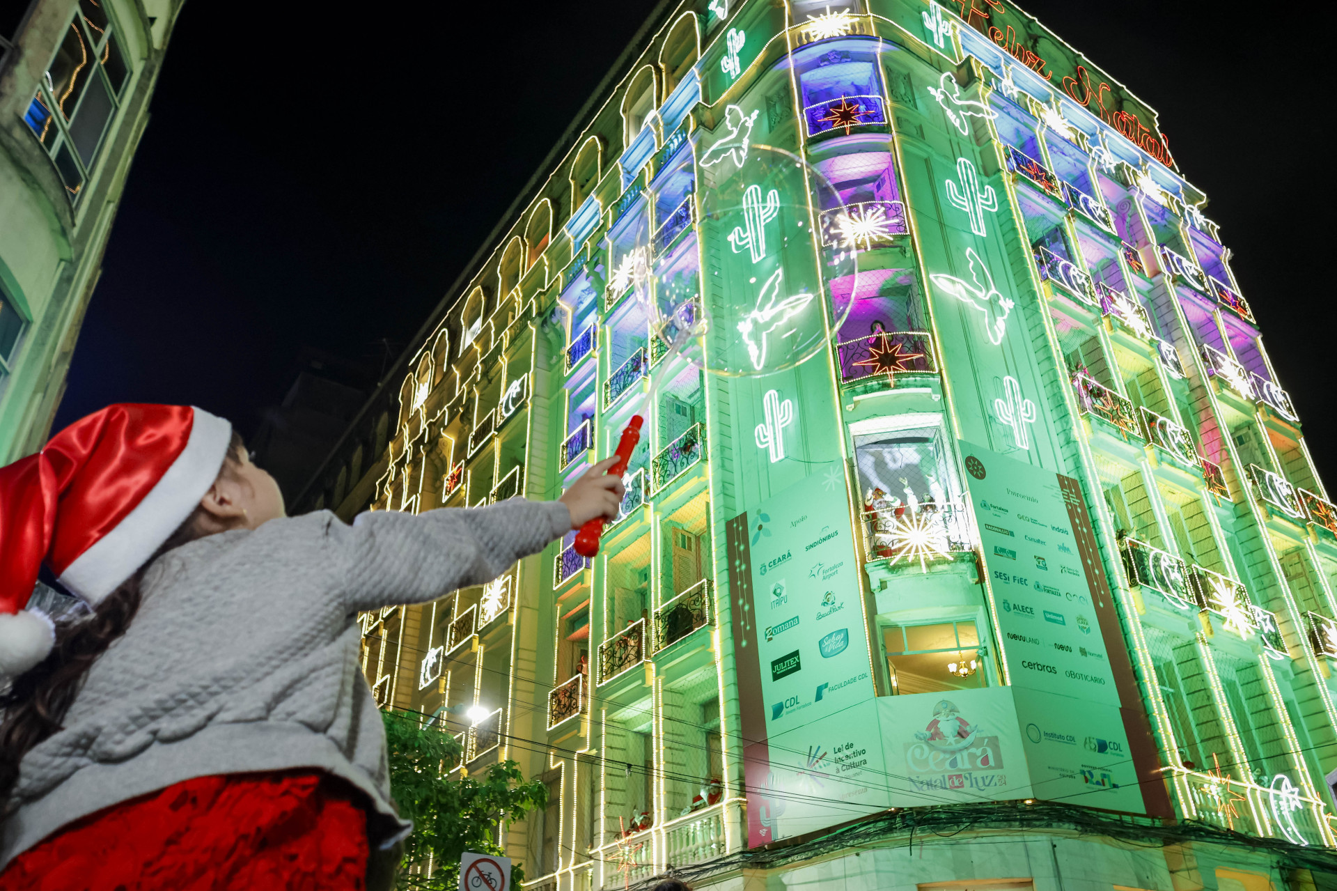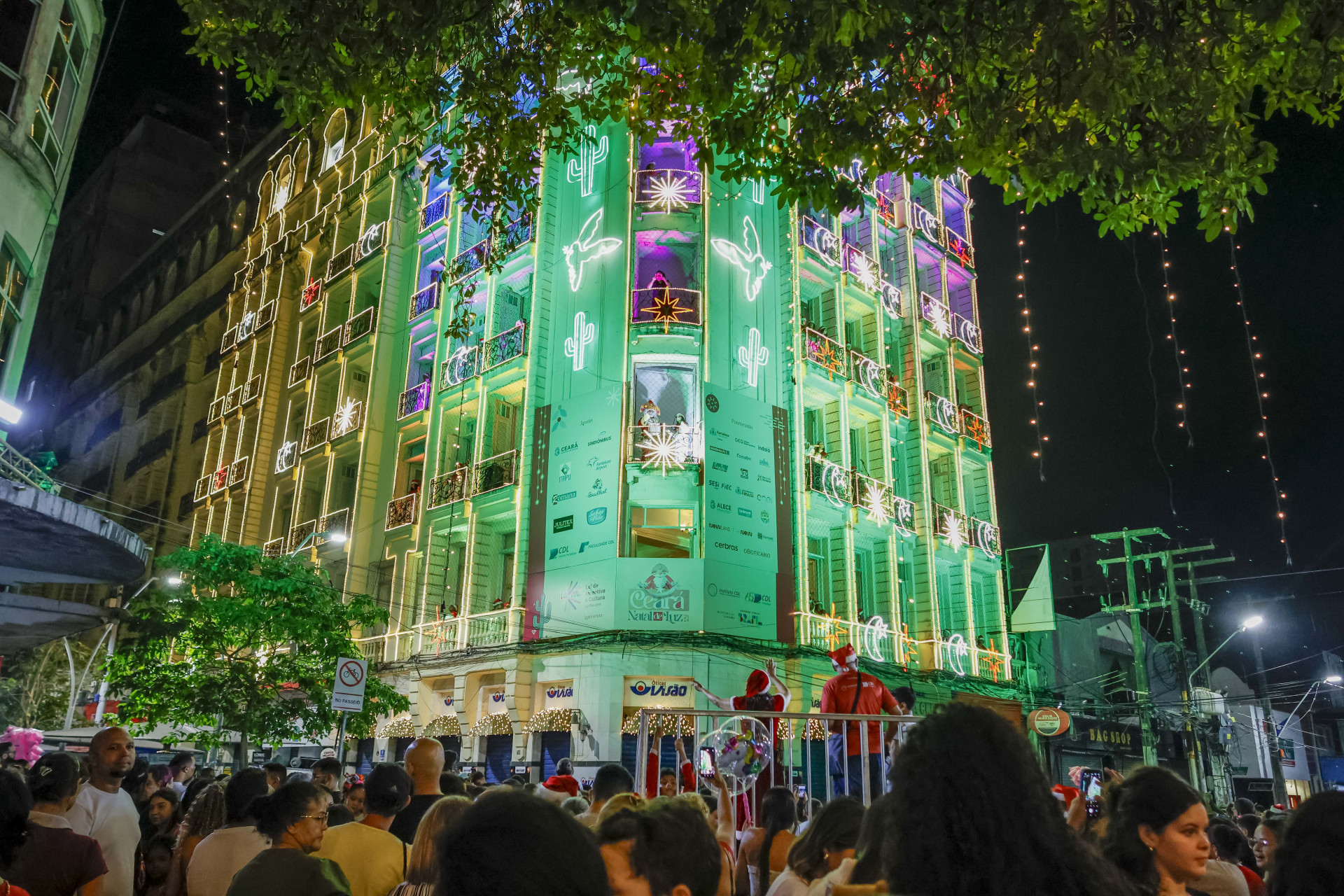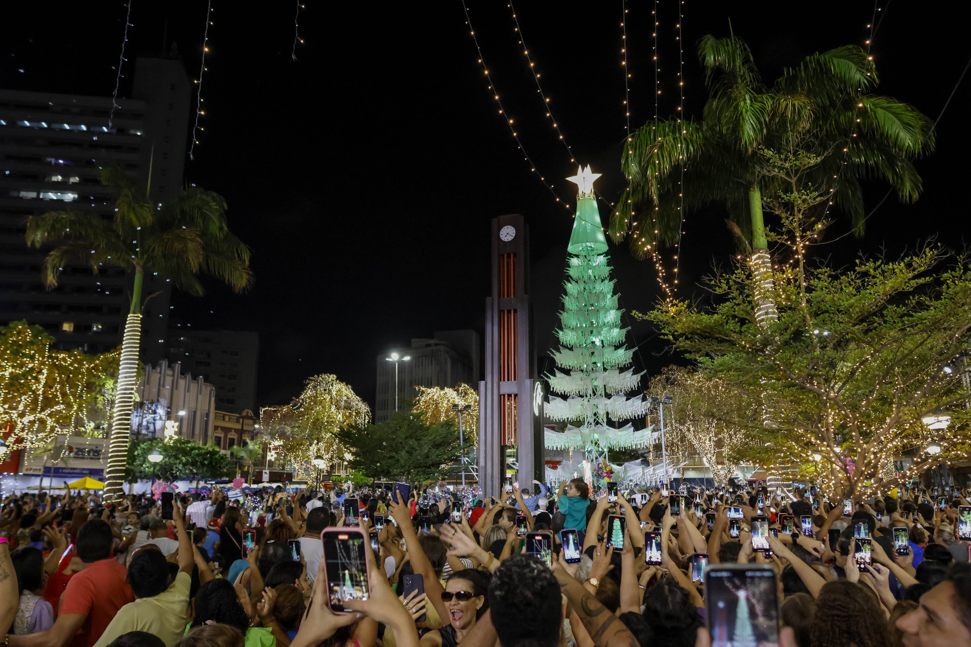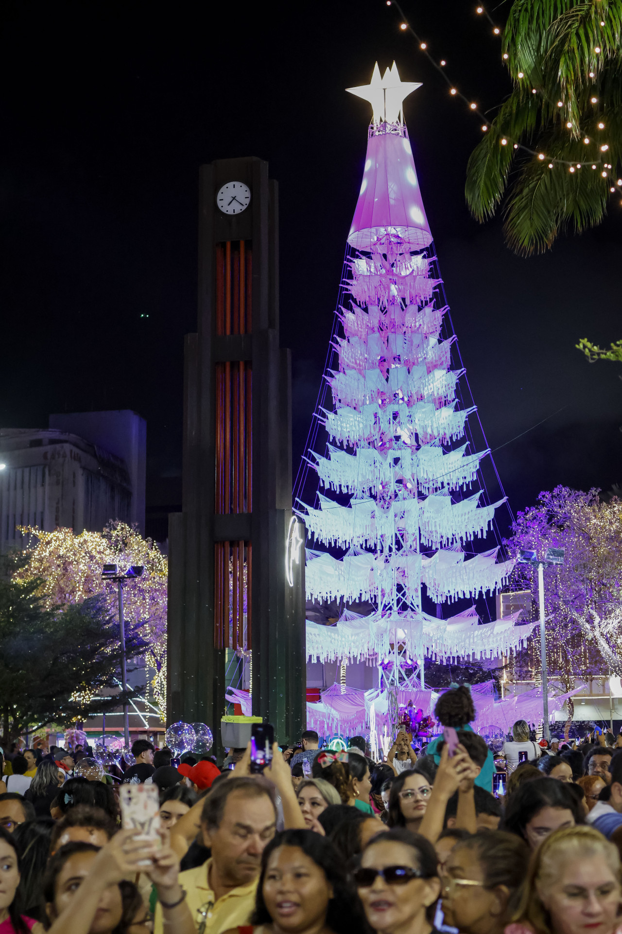 Centenas de pessoas, entre crianças e adultos, prestigiaram a abertura da 28º edição do Natal de Luz, na Praça do Ferreira, em Fortaleza, na noite desta sexta-feira, 22. Evento teve entre as novidades o show do padre Fábio de Melo e a exaltação da cearensidade, com o Papai Noel chegando de jangada no local.