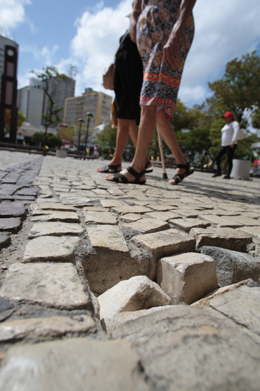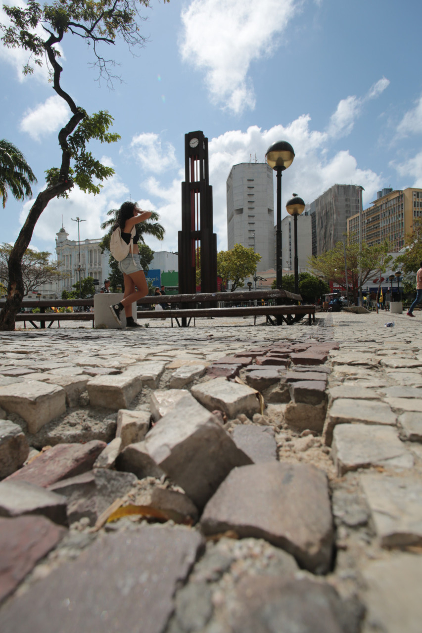 Em setembro deste ano, a três meses do prazo de conclusão previsto para a obra, O POVO esteve na Praça do Ferreira e encontrou diversos problemas, como buracos no piso, bancos quebrados e lixo espalhado pelo logradouro.