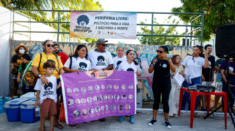 A 12ª edição da Marcha da Periferia, realizada neste sábado, 30, reuniu dezenas de movimentos sociais, coletivos e organizações na Praça Santa Cecília, no bairro Bom Jardim, em Fortaleza. Com o tema "Periferia Livre: Políticas Para a Vida e Não Para a Morte", o evento denunciou práticas consideradas pelos participantes como repressivas e criminalizadoras nas políticas de segurança pública para as periferias do Ceará.