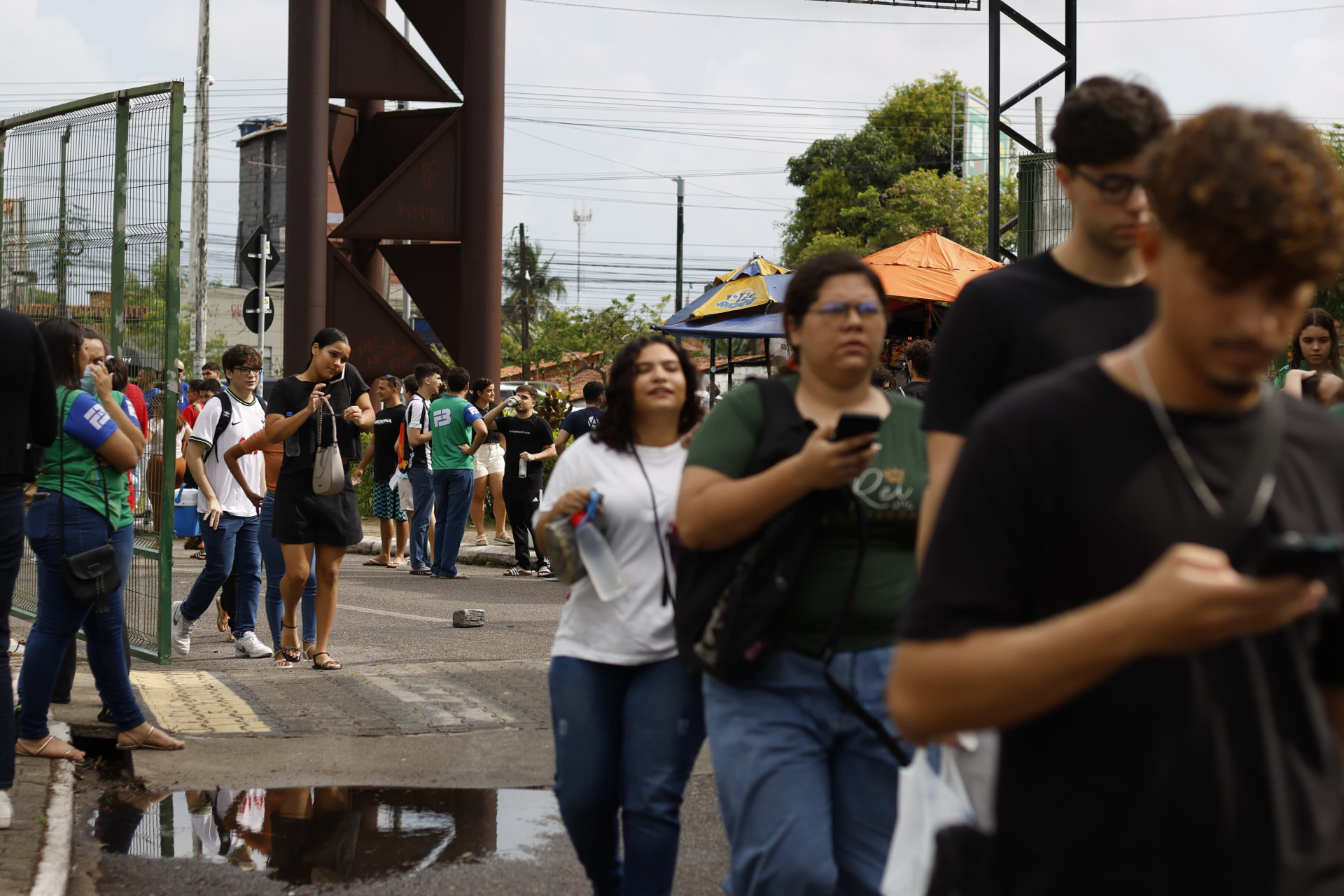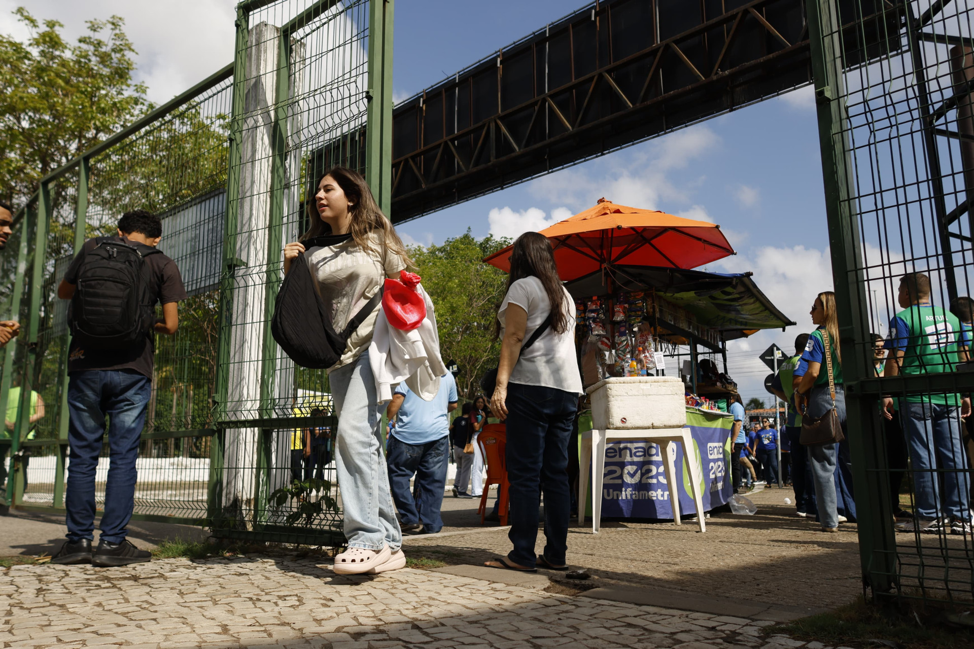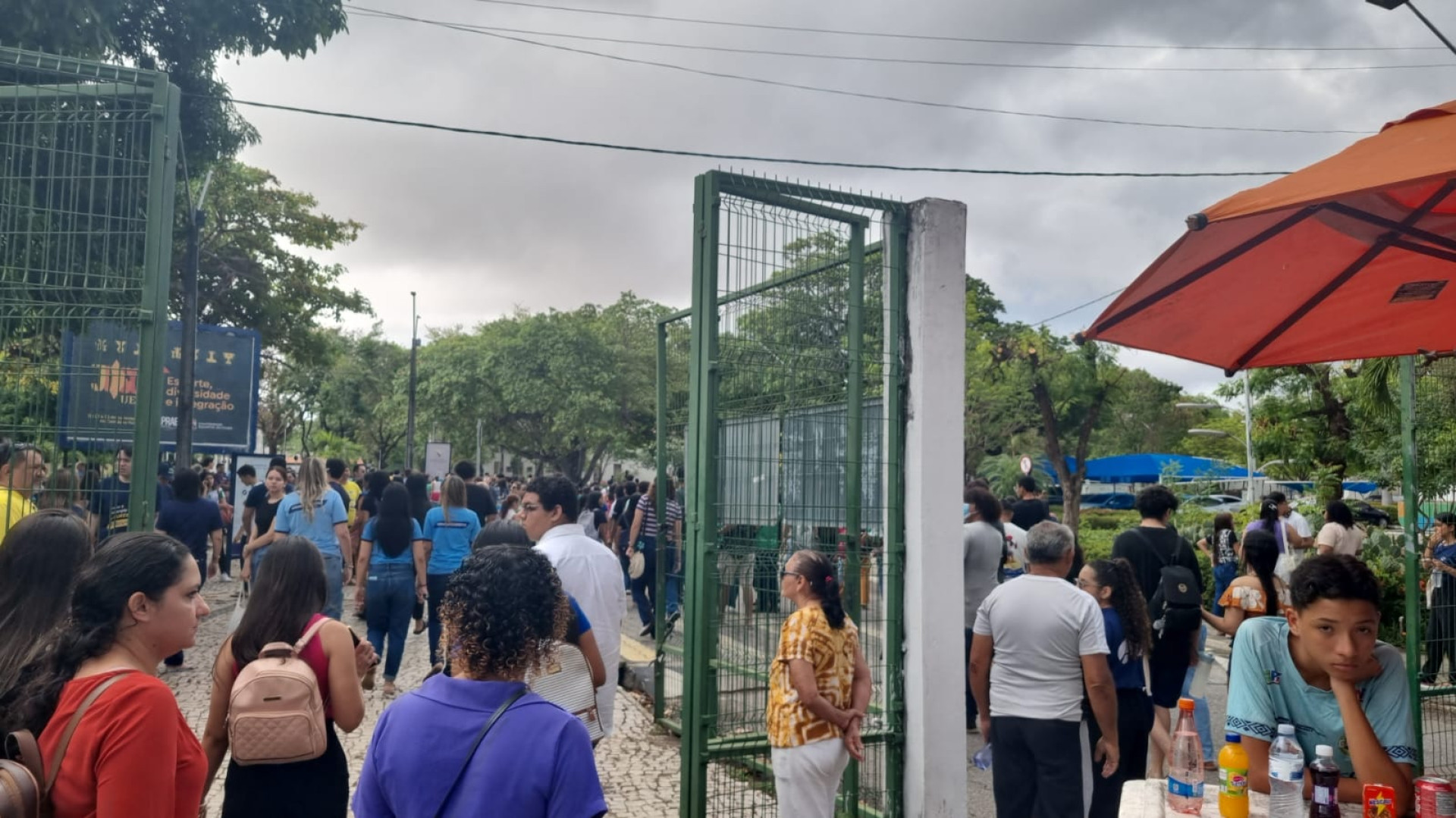 Por volta das 8 horas, uma breve chuva atingiu a região. Apesar do tempo fechado e dos guarda-chuvas abertos na entrada do campus Itaperi, o entusiasmo dos estudantes não foi abalado. Muitos chegaram cedo, encarando o clima como um desafio a mais em busca da tão sonhada vaga no ensino superior.